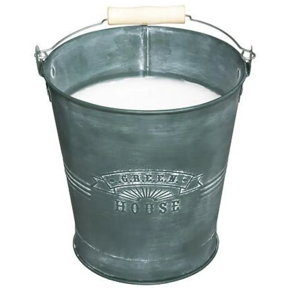 - Styl vintage: postarzane, grawerowane cynkowe wiaderko w zielonym kolorze