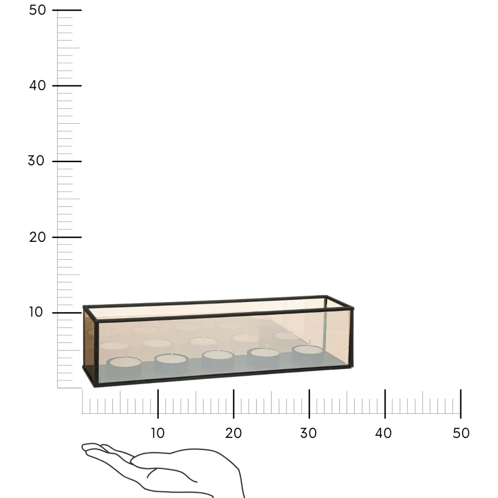 Świecznik Infini: Twój klucz do wyjątkowej atmosfery Świecznik Infini to doskonała kombinacja elegancji i nowoczesności, która doda wyjątkowego uroku Twojemu wnętrzu. Ten wyjątkowy świecznik to nie tylko źródło romantycznego oświetlenia, ale również designerski element dekoracyjny, który wprowadzi do Twojego domu niepowtarzalny klimat. Główną część świecznika stanowi prostokątny pojemnik wykonany z wysokiej jakości szkła i metalu, który nie tylko nadaje mu solidnej struktury, ale także zapewnia stabilność. W środku tego eleganckiego pojemnika znajduje się pięć miejsc na świeczki Tealight, które po zapaleniu tworzą delikatny, ciepły blask, idealny do relaksu i tworzenia przytulnej atmosfery. Możesz umieścić go na kredensie z ciemnego drewna Atmosphera, tworząc harmonijne połączenie materiałów i dodając wnętrzu nowoczesny, industrialny charakter. O tym warto pamiętać! Wykonany z trwałej parafiny, solidnego żelaza i eleganckiego szkła, ten świecznik zapewnia nie tylko wyjątkowy wygląd, ale także trwałość na lata. Dzięki pięciu miejscom na świeczki możesz cieszyć się jeszcze intensywniejszym oświetleniem i magią płomieni. Świecznik doskonale wpisuje się w trendy wnętrzarskie, dodając pomieszczeniu oryginalności i charakteru. Jest łatwy w utrzymaniu czystości i konserwacji, co sprawia, że będzie służył Ci przez wiele sezonów. Nadaje się do różnych wnętrz, od salonu po sypialnię czy jadalnię, tworząc przytulną atmosferę o każdej porze roku.