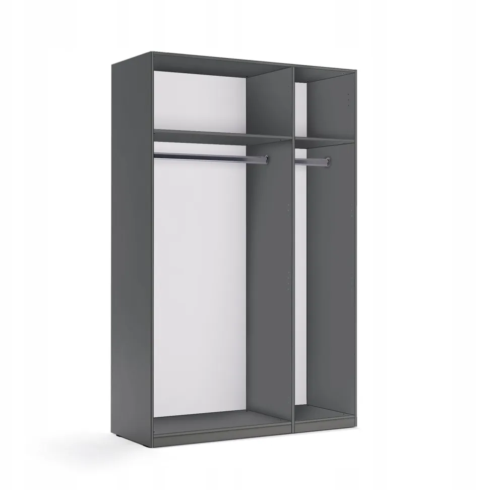 Wnętrze szafy zawiera półki, umożliwiające wyeksponowanie ulubionych dodatków i zapewniające różnorodność w organizacji przestrzeni. Możliwość wyboru modelu dostosowanego do indywidualnych potrzeb, który nie tylko uzupełni wnętrze, ale także pomieści wszystkie potrzebne rzeczy, dzięki czemu szafa jest pojemna i kompaktowa. Istnieje opcja dokupienia dodatkowych półek, drążków i szuflad, co pozwala jeszcze bardziej dostosować mebel do własnych potrzeb.