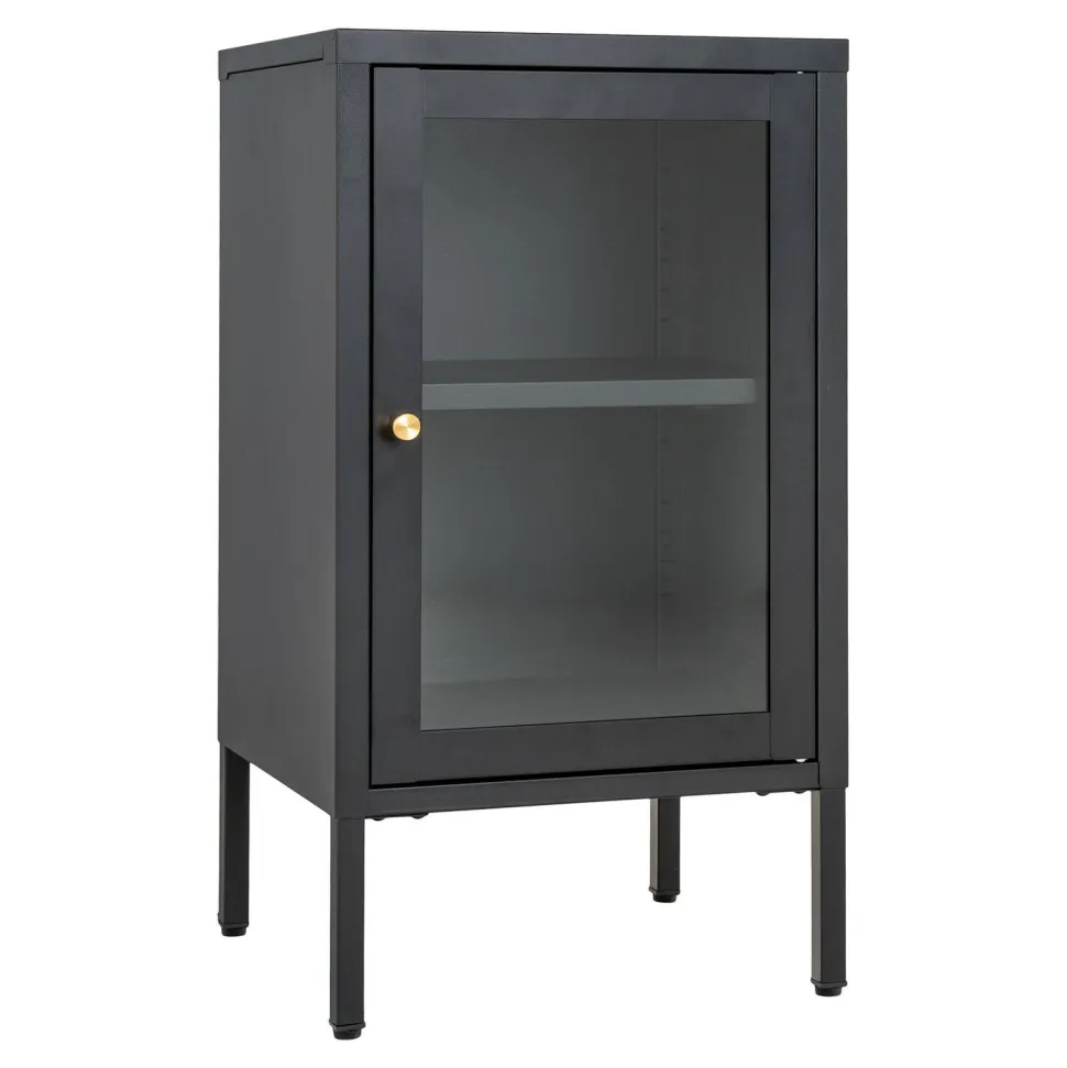 Szafka Dalby w kolorze czarnym to metalowy mebel o industrialnym stylu, który doskonale pasuje do typowo holenderskich wnętrz. Jej minimalistyczna forma utrzymana w matowej czerni stanowi doskonałe uzupełnienie zarówno sypialni, jak i salonu.