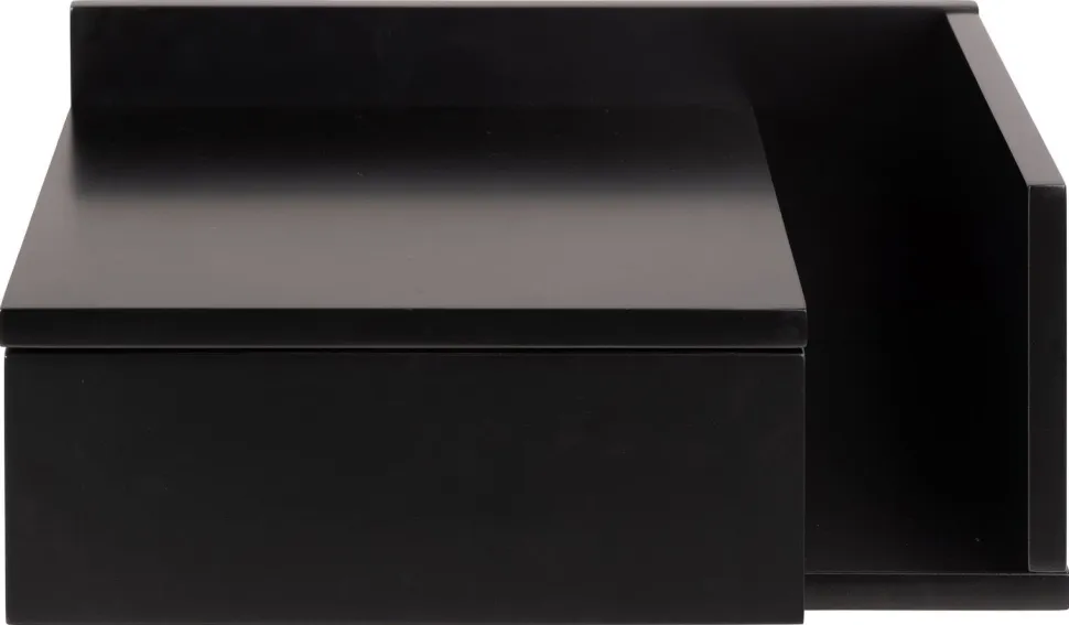 Przygotuj się do stworzenia stylowej, nowoczesnej sypialni szafką nocną Ashlan II w kolorze czarnym. Jej minimalistyczny design i prosta geometria sprawiają, że z pewnością wpasuje się w Twój nowoczesny wystrój. Nie daj się jednak zwieść jej niewielkim rozmiarom, została zaprojektowana tak, by pomieścić najpotrzebniejsze rzeczy przy łóżku. Mebel wykonany jest z wytrzymałej płyty MDF i będzie Ci służyć przez lata. Wyposażona jest w jedną zamykaną szufladę i małą boczną półkę do przechowywania np. książek czy czasopism, dzięki czemu masz łatwy dostęp do wszystkich swoich rzeczy. Szuflada bez uchwytów sprawia, że mebel zyskuje na elegancji. Projekt oferuje mnóstwo miejsca i funkcjonalności bez kompromisów w kwestii stylu!