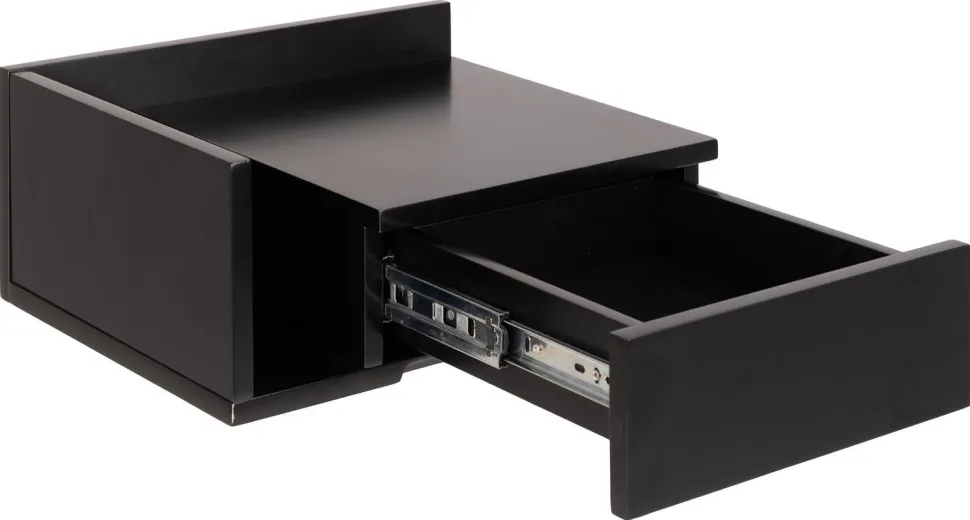 Szafka nocna Ashlan II jest idealna do każdej nowoczesnej sypialni. Minimalistyczny mebel wiszący wykonany jest z płyty MDF i posiada zamykaną szufladę oraz małą boczną półkę, dzięki czemu świetnie nadaje się do trzymania pod ręką niezbędnych rzeczy w sypialni. Jest to doskonałe rozwiązanie dla fanów prostych i eleganckich rozwiązań.