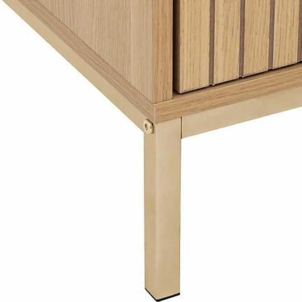 Wyobraź sobie szafkę nocną, która nie tylko spełnia swoje podstawowe funkcje, ale także dodaje uroku Twojemu wnętrzu. Szafka nocna Tasso naturalna to idealne połączenie estetyki i praktyczności. Jej korpus wykonany z wytrzymałej płyty MDF pokrytej matową okleiną imitującą drewno, wsparty na złotej, metalowej podstawie, przyciąga wzrok i dodaje wnętrzu ciepła. Dwie szuflady z metalowymi uchwytami zapewniają dodatkową przestrzeń do przechowywania, a ich fronty ozdobione lamelami nadają meblowi niepowtarzalny charakter. Szafka nocna Tasso naturalna to nie tylko mebel, to dodatek, który podkreśla styl Twojego domu.