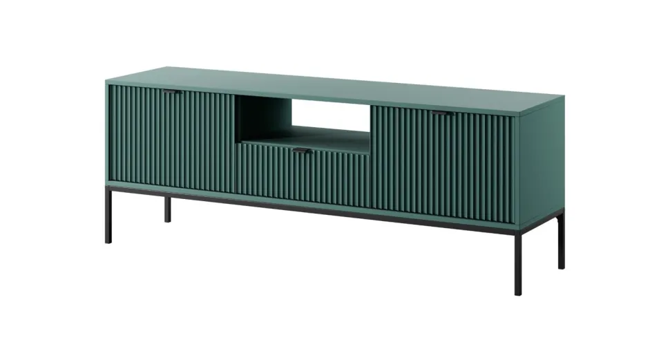 Szafka RTV Delicious ryflowana zielona czarne uchwyty – elegancja i funkcjonalność