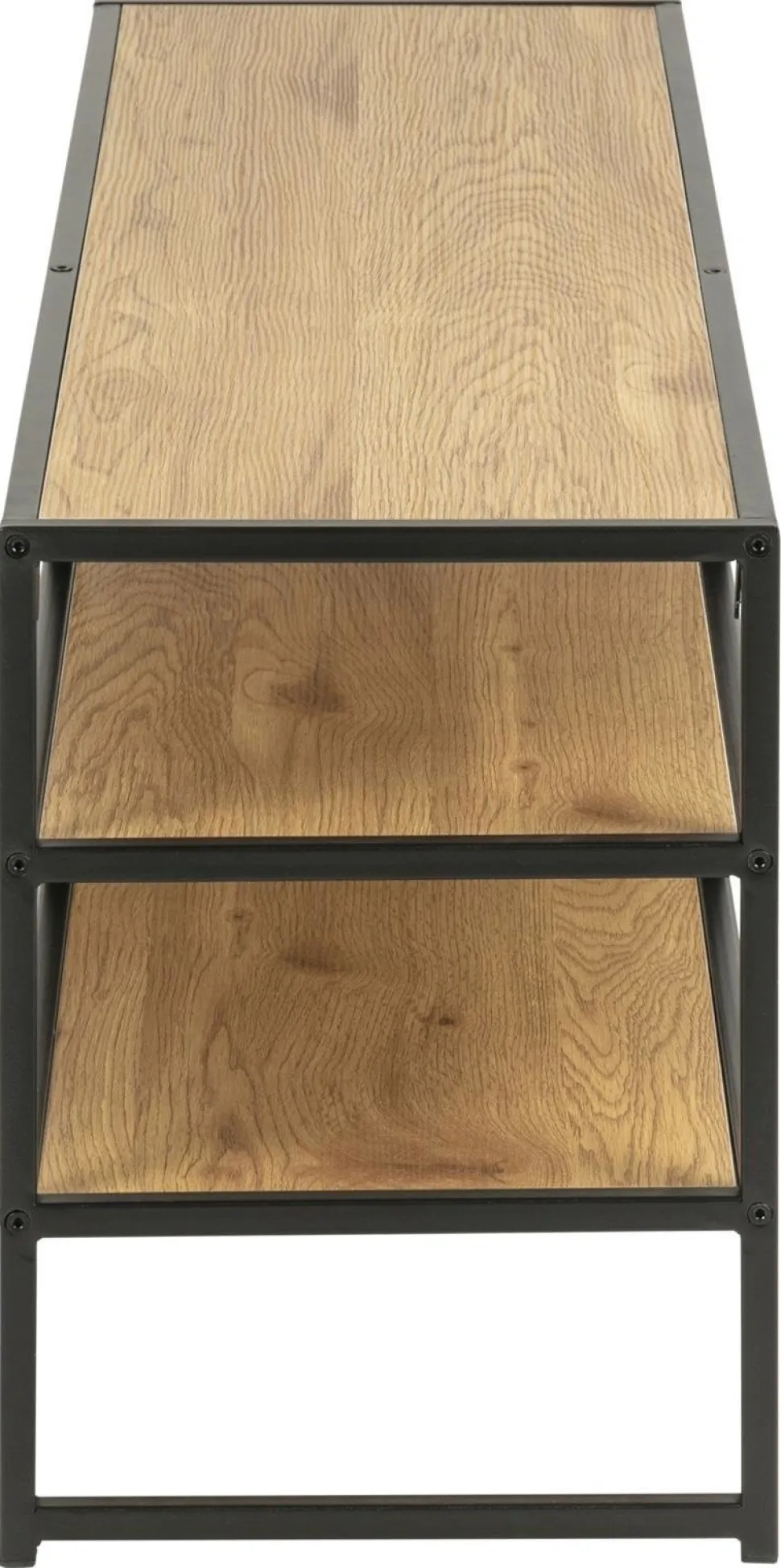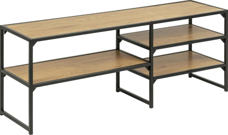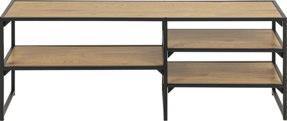 Seaford szafka RTV jest kolejnym elementem rozchwytywanej serii Seaford. Seria mebli Seaford charakteryzuje się pięknymi teksturami zamkniętymi w prostej formie. Szafka RTV została zrobiona z metalu pomalowanego proszkowo na czarno. Cztery półki szafki zostały zrobione z płyty MDF pokrytej okleiną imitującą naturalne drewno dębu. Matowe wykończenie szafki jest idealne do wnętrz w stylu industrialnym. Waga: 11,9 kg.