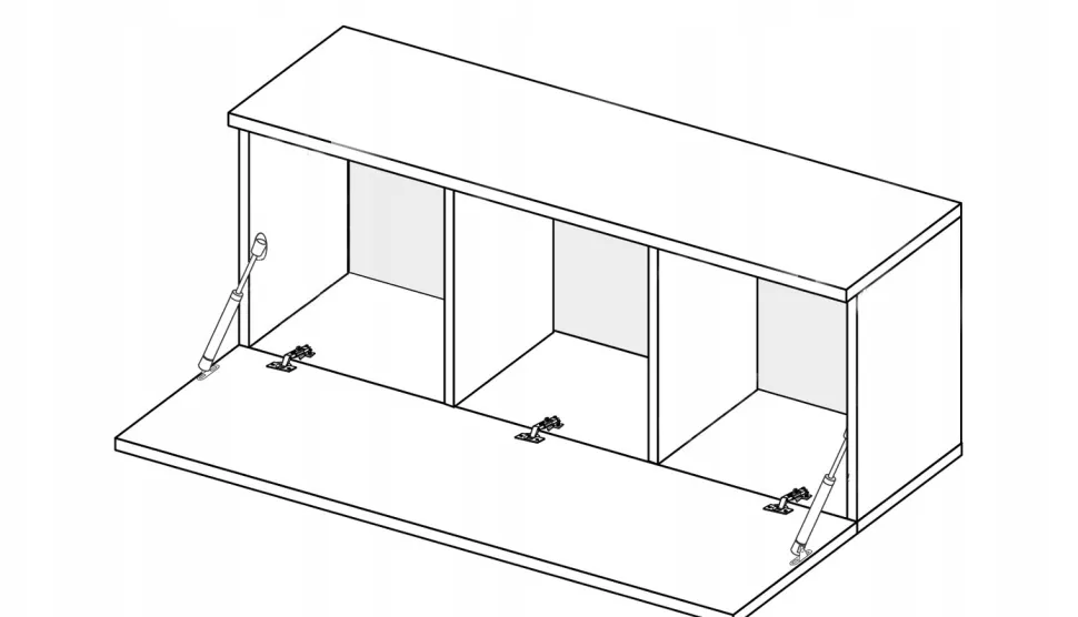 Blaty szafki zostały wykonane z płyty wiórowej laminowanej o grubości 16 mm, co gwarantuje solidność i odporność na uszkodzenia. Fronty oraz górny blat z kolei wykonane są z płyty wiórowej i pokryte lakierem trzywarstwową powłoką lakierniczą, suszoną promieniami UV. Dzięki temu uzyskano idealnie błyszczącą powierzchnię, która nie żółknie z czasem, zachowując swoje walory estetyczne na długie lata. Szafka wyposażona jest w mechanizm Push to Open, który umożliwia otwarcie poszczególnych szafek za pomocą kliknięcia na front. Dodatkowo, otwieranie drzwi odbywa się za pomocą podnośników gazowych, co zapewnia płynne i ciche zamknięcie. Nie czekaj dłużej i już dziś ciesz się Szafką wiszącą Box!