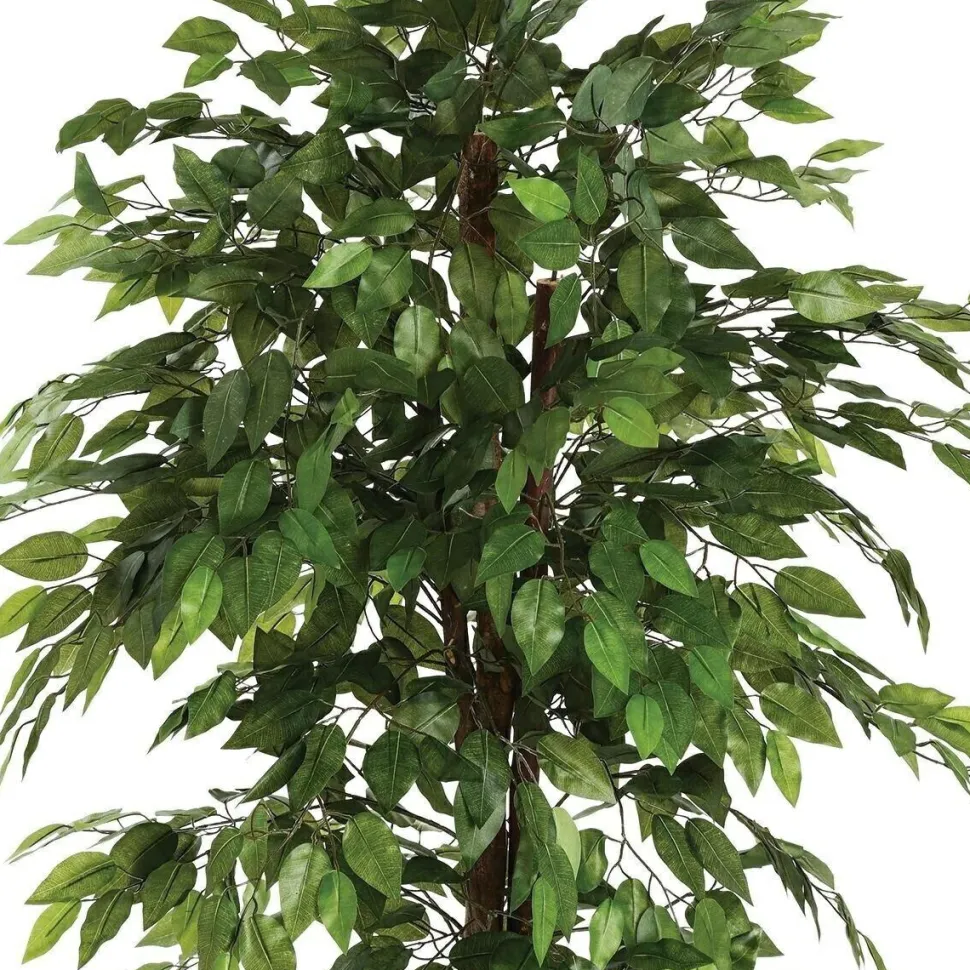 Sztuczne drzewo Fikus o wysokości 180 cm z doniczką to imponujący element dekoracyjny, który dodaje uroku i zieleni do każdego wnętrza. Jego duże rozmiary oraz bujne, realistyczne liście tworzą naturalny wygląd, który ożywia przestrzeń. Dzięki starannemu wykonaniu z wysokiej jakości materiałów, takich jak poliester na liście, polietylen na doniczkę oraz żelazo i eukaliptus na konstrukcję, ten fikus jest trwały i stabilny.