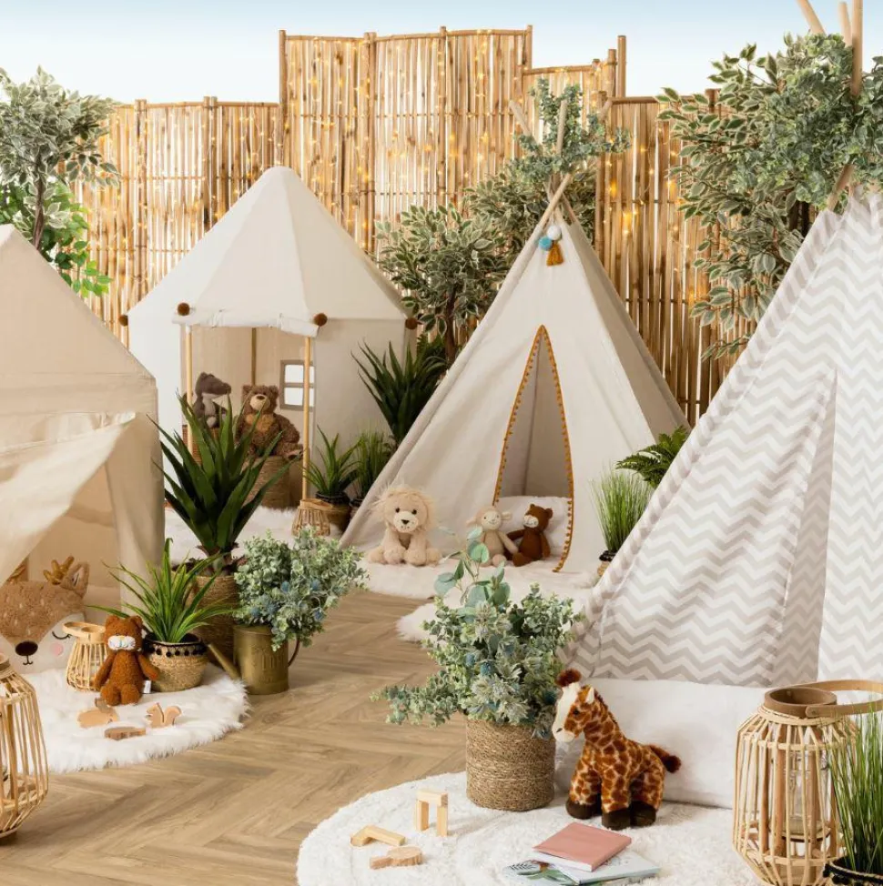 Doświadcz idealnego połączenia stylu i wygody z naszym nowym namiotem Tipi! Namiot jest idealny do każdego pomieszczenia, zapewniając zabawny sposób na zwinięcie się po długim dniu. Wykonany z drewna topoli, znanego z lekkości i trwałości, z pewnością posłuży Ci przez wiele pełnych zabawy przygód. Miękkie pompony zdobią zewnętrzną stronę tego namiotu, nadając mu piękny wygląd, który wszyscy mogą podziwiać. Na dodatek posiada boczne okno, które wpuszcza naturalne światło, a jednocześnie pozwala zachować prywatność, której potrzebuje Twoje dziecko. Dzięki łatwemu montażowi i demontażowi oraz dołączonej torbie do przechowywania o łącznej wadze nieco ponad 2 kg ten namiot Tipi jest również bardzo wszechstronny! Niezależnie od tego, czy chodzi o zabawy w ogródku, czy po prostu spędzenie ciekawie czasu w domu, Ty i Twoja rodzina możecie teraz spędzić razem niesamowity czas – zarówno w domu, jak i na zewnątrz.