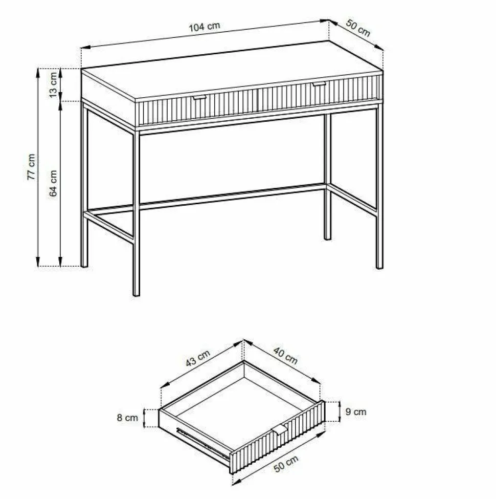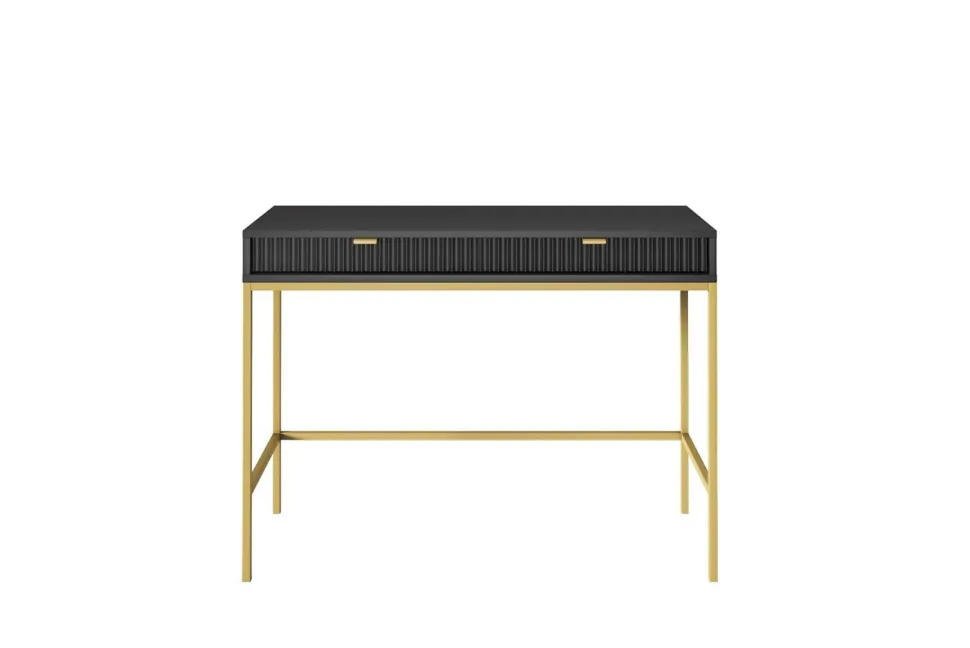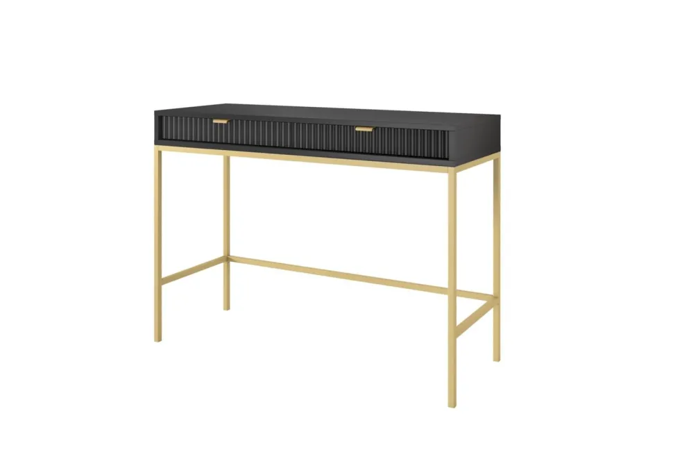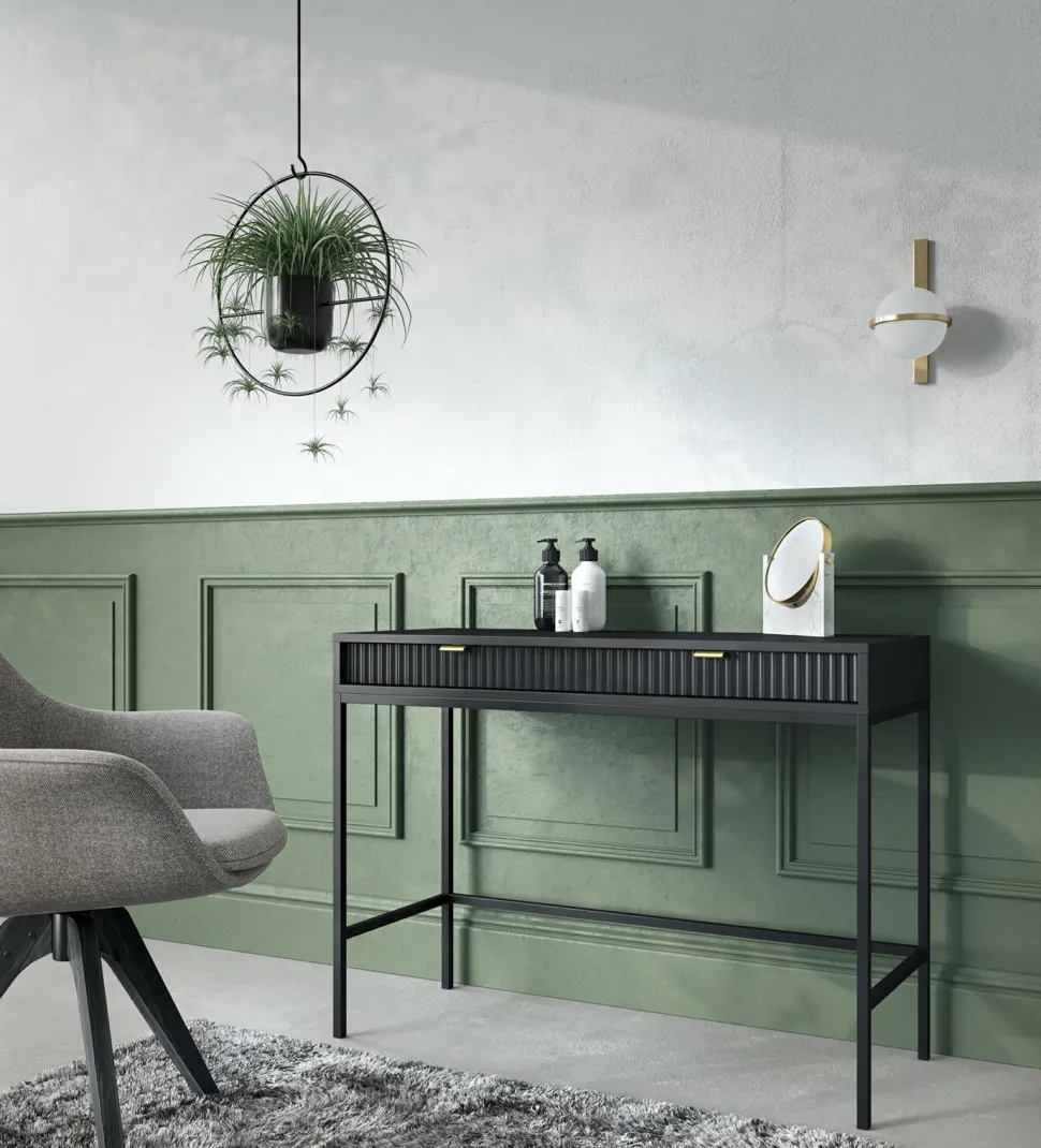 Szukałeś idealnego połączenia stylu i funkcjonalności? Nie szukaj dalej niż Toaletka Delicious! Zachwycająca toaletka zapewni nie tylko ponadczasową estetykę, ale także mnóstwo możliwości przechowywania. Wykonana z ryflowanymi frontami szuflad, które są pięknie podkreślone aluminiowym uchwytem w kolorze złotym, toaletka natychmiast ulepszy wygląd każdej przestrzeni życiowej! Niestandardowy stolik o szerokości 104 cm i głębokości 50 cm zapewnia wystarczająco dużo miejsca do schludnego przechowywania ładowarki do telefonu, kosmetyków, kluczy i innych rzeczy, jednocześnie utrzymując wszystko w porządku – sprytny styl w najlepszym wydaniu! Ponadto metalowe nogi podstawy zapewniają niezawodną wytrzymałość, a wyższy profil umożliwia wygodne odkurzanie i wycieranie pod nim, zapewniając najwyższy spokój ducha. Wyróżnij się z tłumu dzięki Delicious Toiletry – oszałamiającemu projektowi, który z pewnością wzbudzi podziw!