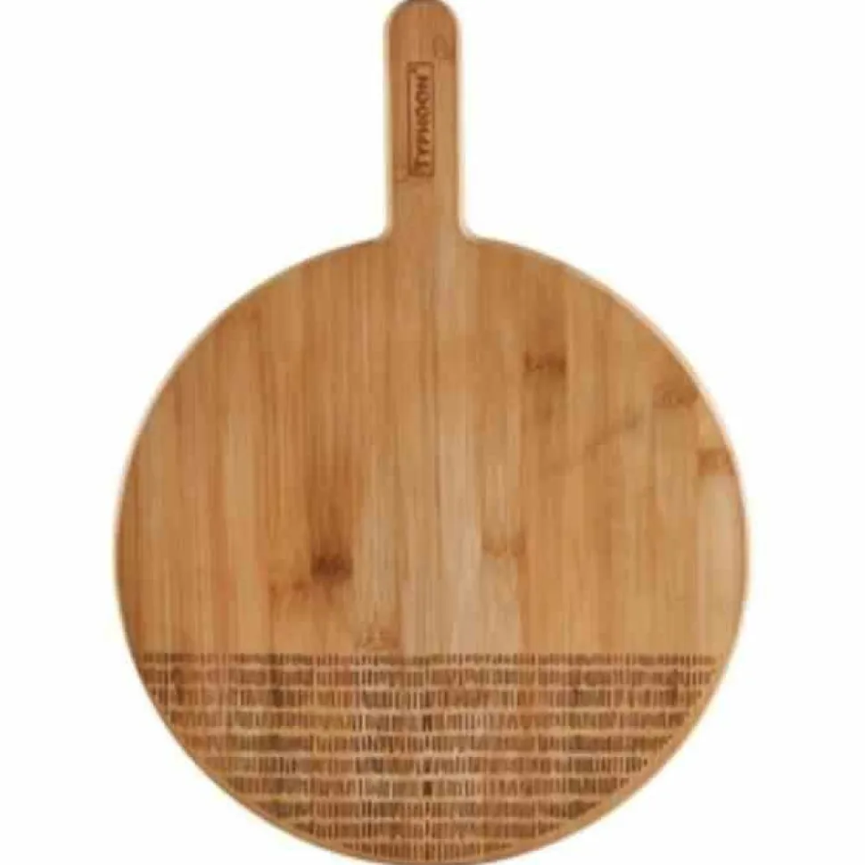 Deska do serwowania pizzy Monochrome wykonana jest z drewna bambusowego i posiada praktyczny uchwyt do przenoszenia. Dolna część jest ozdobiona eleganckim wzorem. Deskę należy myć ręcznie.