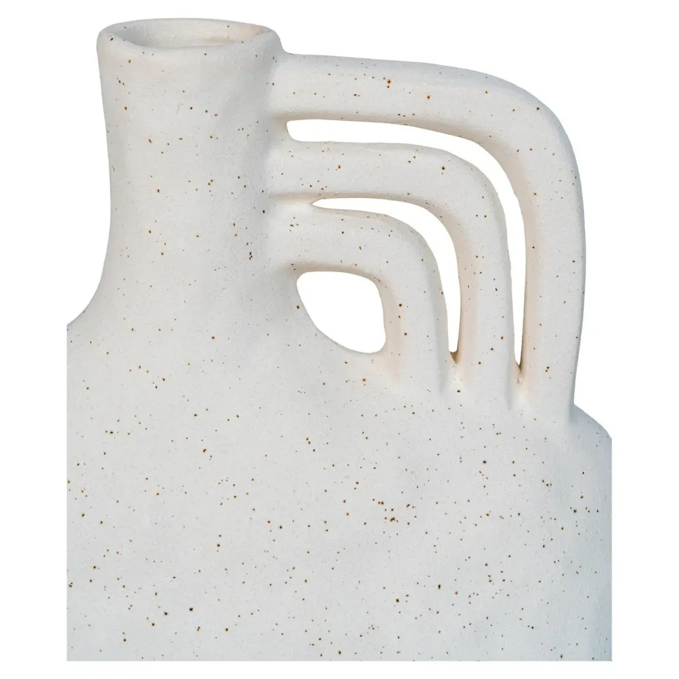 Ceramiczny wazon o nieregularnym kształcie i wyjątkowym uchwycie to doskonały dodatek do minimalistycznych wnętrz, który nie tylko pełni funkcję dekoracyjną, ale także dodaje charakteru konsoli, toaletce czy innej przestrzeni, którą ozdabia.
