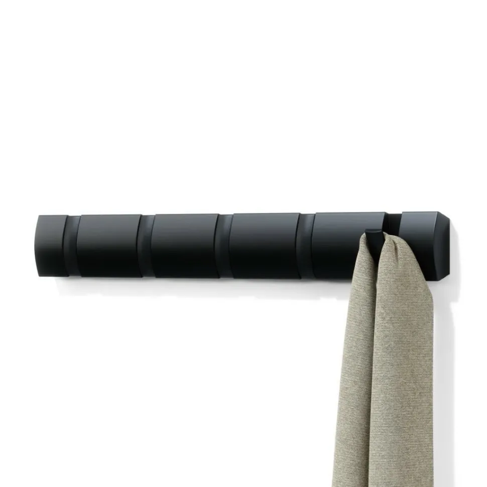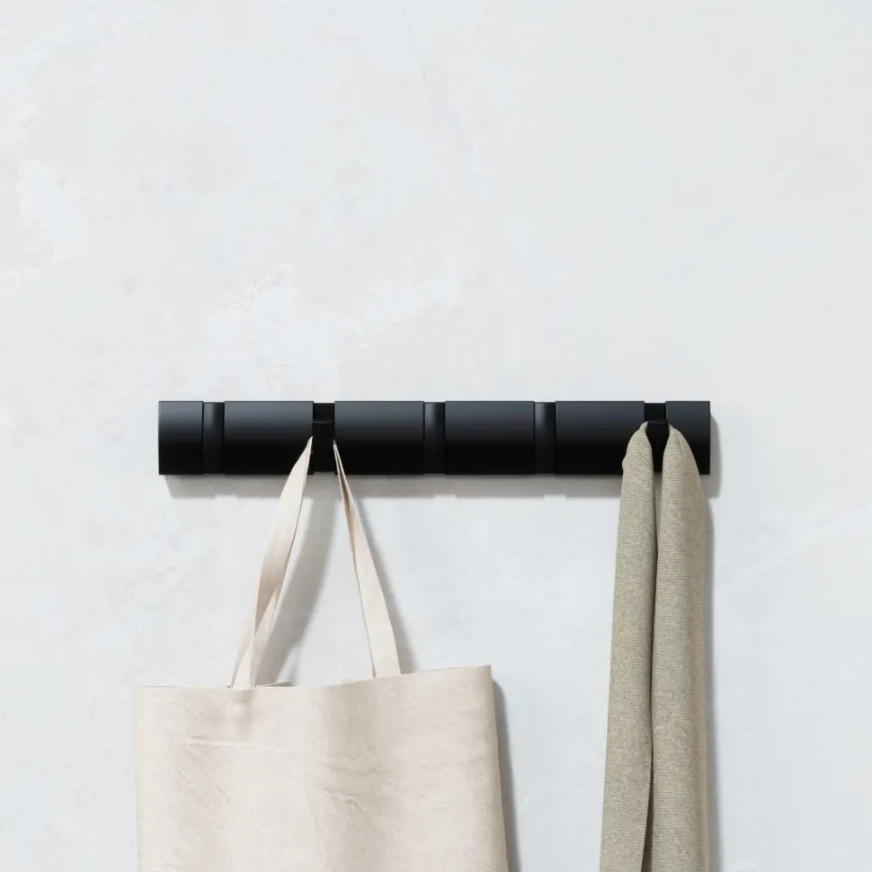 Wieszak czarny FLIP, 5 haczyków – ścienny wieszak na kurtki lub torebki