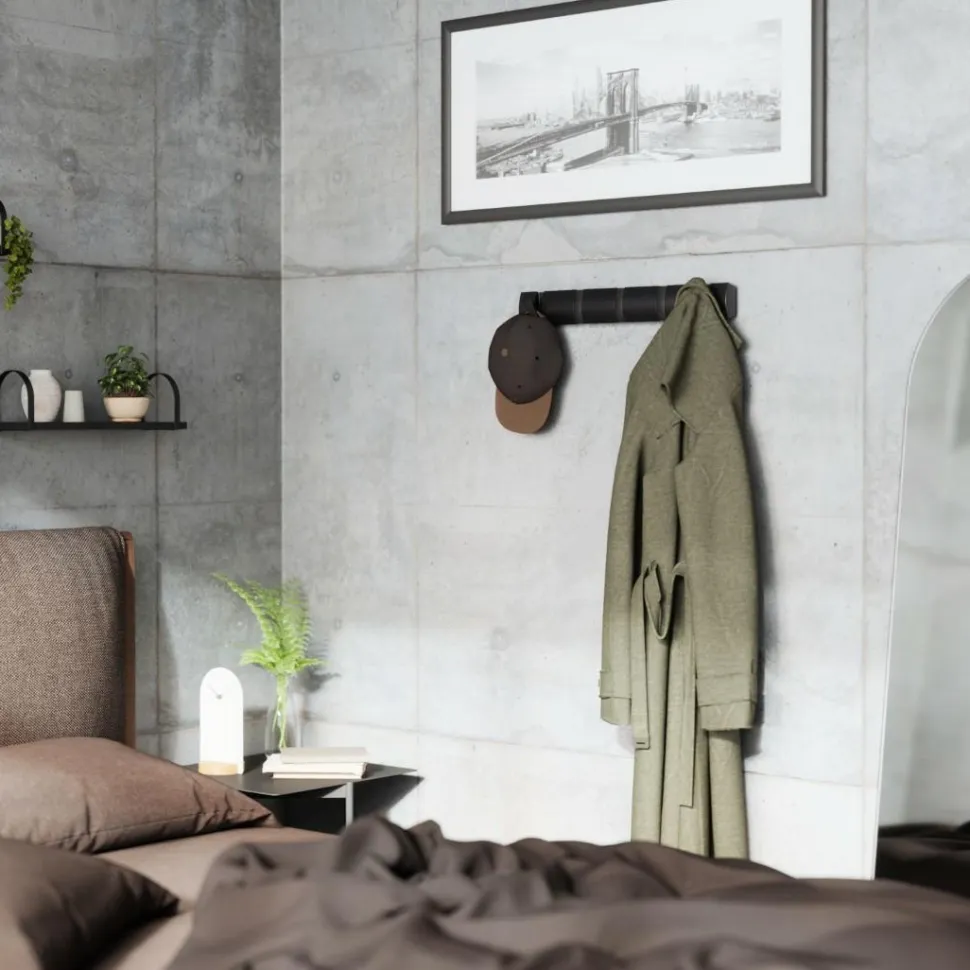 Wieszaki Flip to nowoczesne, a zarazem funkcjonalne akcesoria ścienne na kurtki lub torebki. Wieszak może poszczycić się sprytnym projektem z pięcioma hakami, które chowają się, gdy nie są używane, każdy hak wsuwa się dokładnie w swój rowek dla oszczędności miejsca. Dzięki eleganckiemu profilowi i ukrytym elementom montażowym, wieszak może być bezproblemowo zainstalowany na niemal każdej ścianie.
