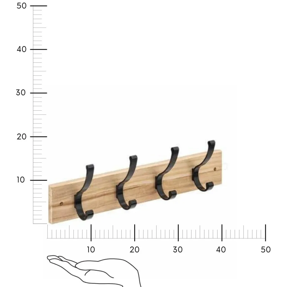 - Drewno paulownia (listwa) i czarny metal (haczyki).
