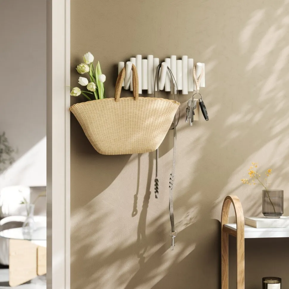 Wymiary wieszaka wynoszą 37 x 17 x 4 cm, a jego elegancki biały kolor pasuje do różnorodnych stylów aranżacyjnych. W zestawie znajduje się także zestaw montażowy, ułatwiający instalację. Wieszak Picket wpisuje się w trend ekologicznych i naturalnych dodatków do wnętrz, co czyni go nie tylko praktycznym, ale także estetycznym elementem wyposażenia Twojego domu.