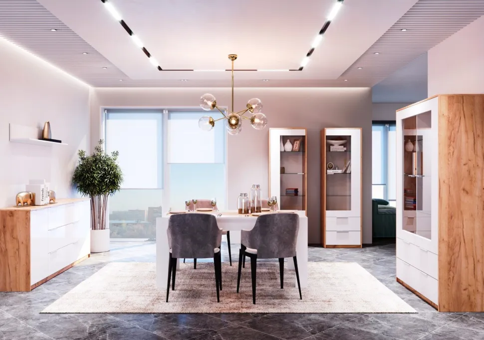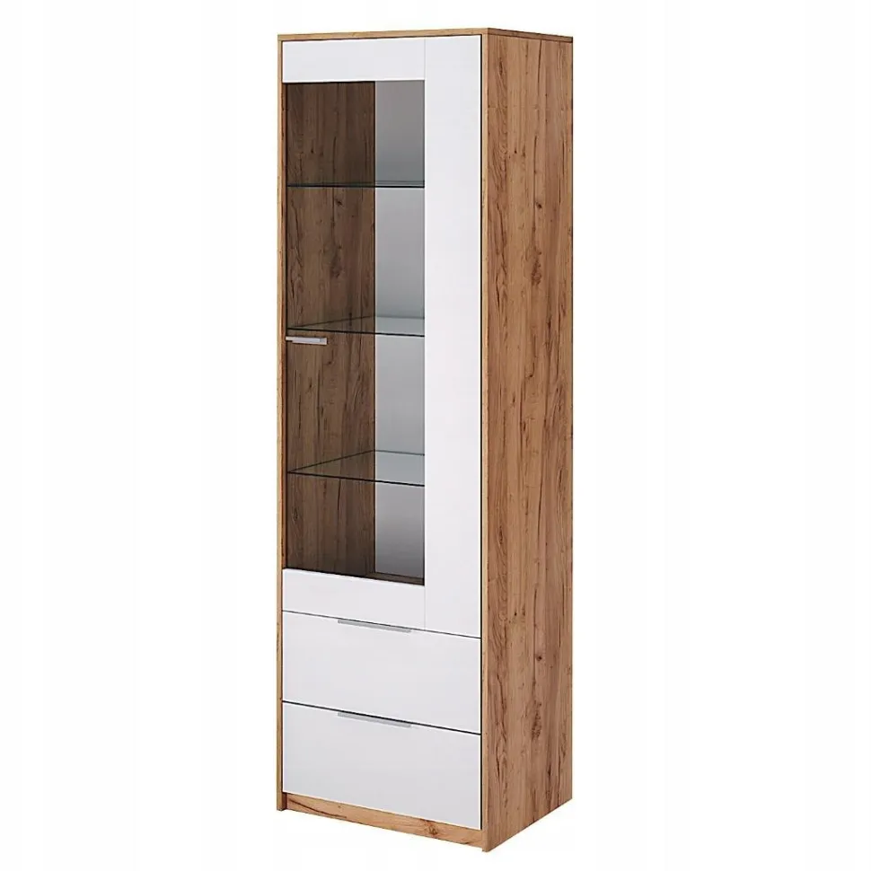 Poszukując mebli do swojego salonu, warto zwrócić uwagę na witrynę Tissa. To połączenie funkcjonalności z estetyką, które idealnie wpisuje się w dzisiejsze trendy wnętrzarskie. Kontrastująca kolorystyka Biały Połysk i Dąb Craft nie tylko prezentuje się stylowo, ale także nadaje pomieszczeniu wyjątkowego charakteru.