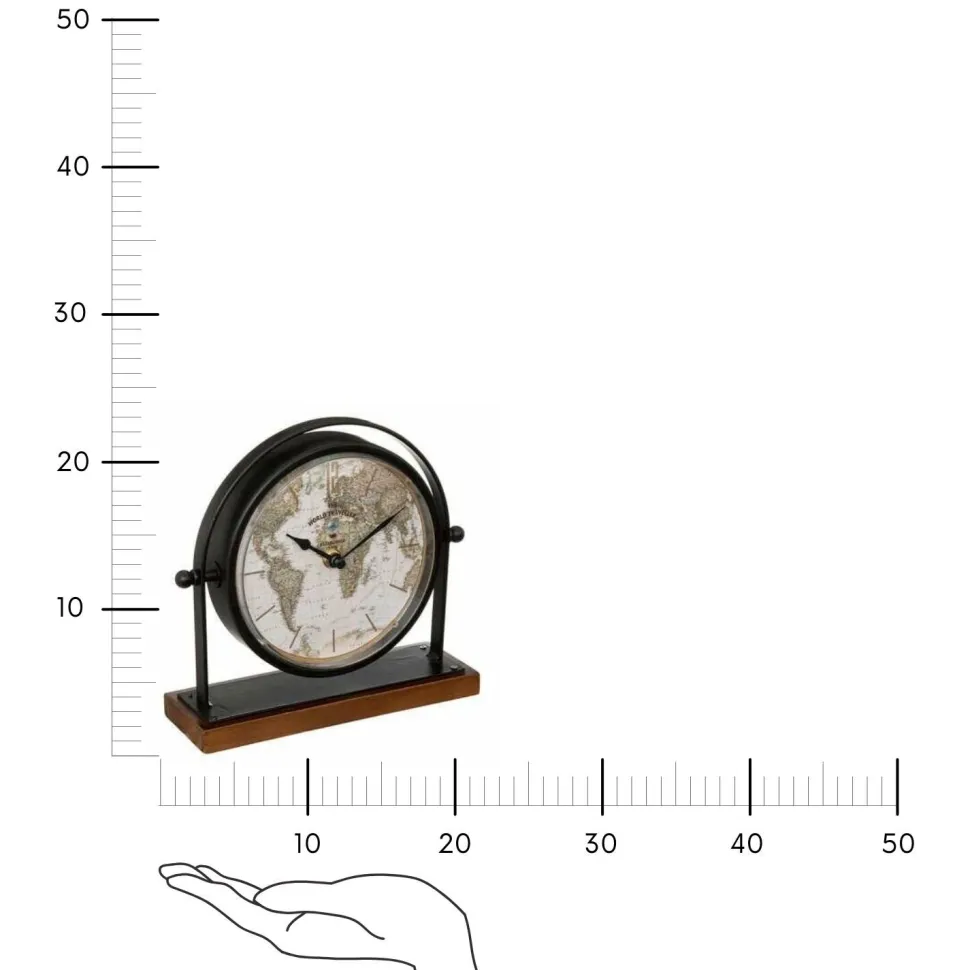 Zegar ten to nie tylko element pomiarowy czasu, ale także wyjątkowa dekoracja wnętrza. Jasne tło zegara prezentuje mapę świata, co nadaje mu charakteru i sprawia, że będzie stanowił interesujący punkt na biurku czy komodzie. Jego klasyczny design doskonale komponuje się z wnętrzami o stylu vintage, dodając im szczyptę elegancji i oryginalności.