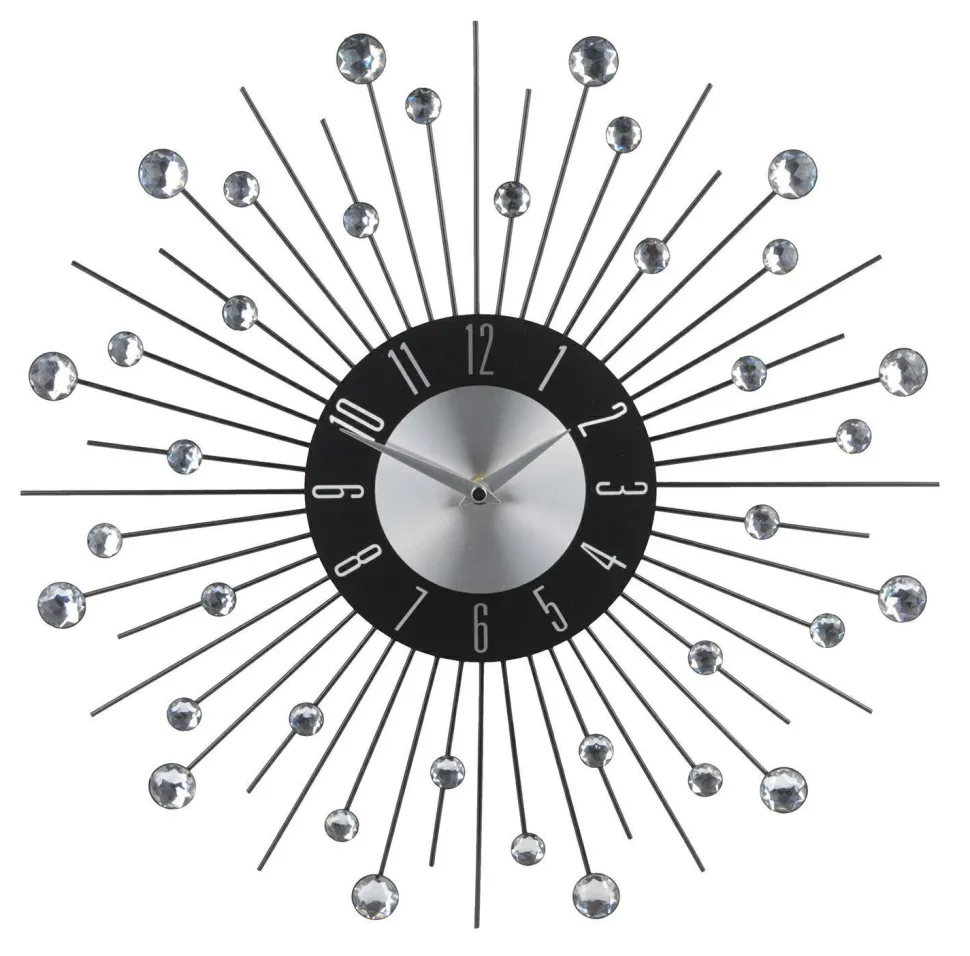Zegar Intesi Crystal Shine to doskonały dodatek do wnętrza glamour. Zegarek perfekcyjnie sprawdzi się w roli ozdoby ściany, dzięki znajdującym się na zakończeniach oprawy kryształkom. . Zegarek zasilany jest bateriami (nie dołączone do zestawu)