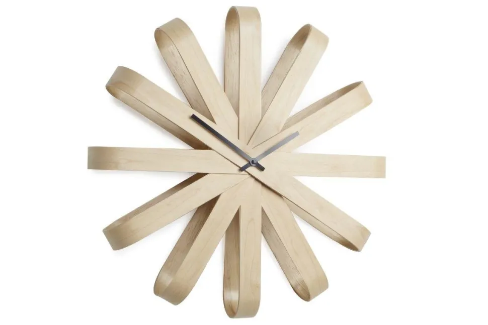 Ribon to zegar, który jest ciekawą dekoracją ściany a dodatkowo bardzo przydatnym gadżetem, który za sprawą braku standardowej tarczy z cyframi jest designerski i ponadczasowy. Wykonany z drewna w naturalnym kolorze sprawdzi się w praktycznie każdej aranżacji. Waga: 1 kg