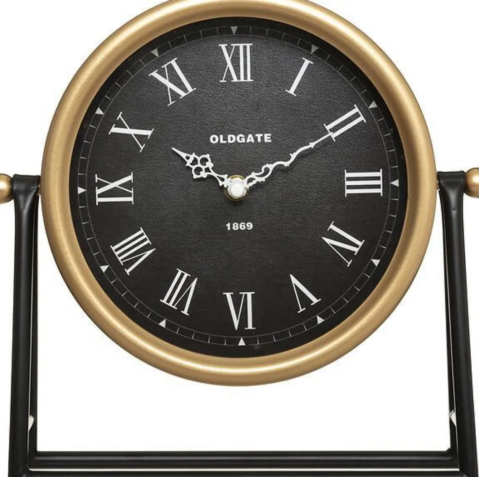 Metalowy zegar stojący to nie tylko przedmiot do odmierzania czasu, ale również modna dekoracja. Metalowa podstawka w kolorze czarnym i ramka w kolorze starego złota to topowe połączenie, którego efektem jest ponadczasowa elegancja. Nie zastanawiaj się dłużej, kup zegar Luca już dziś!
