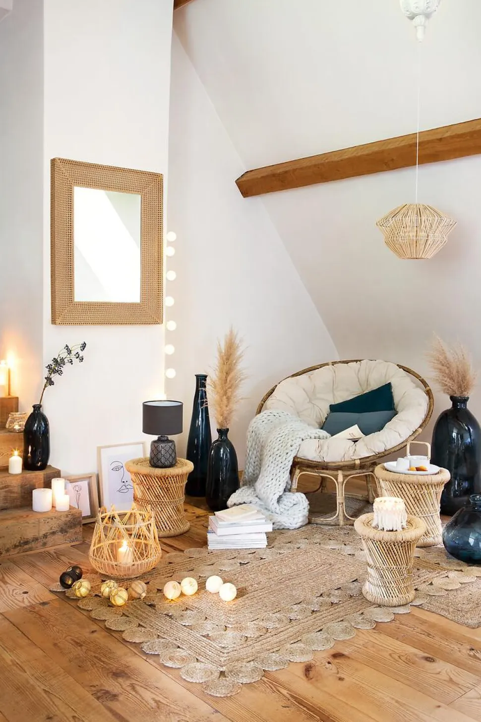 Zestaw 2 stolików Corde natural – Stoliki z bambusa i konopi