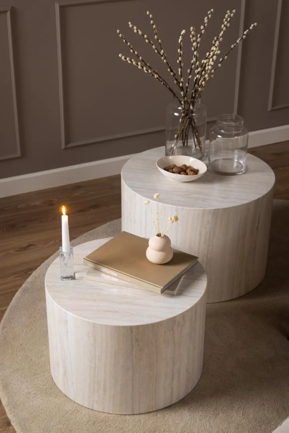 - Zestaw składa się z dwóch stolików o różnych wymiarach, co umożliwia tworzenie ciekawych aranżacji.