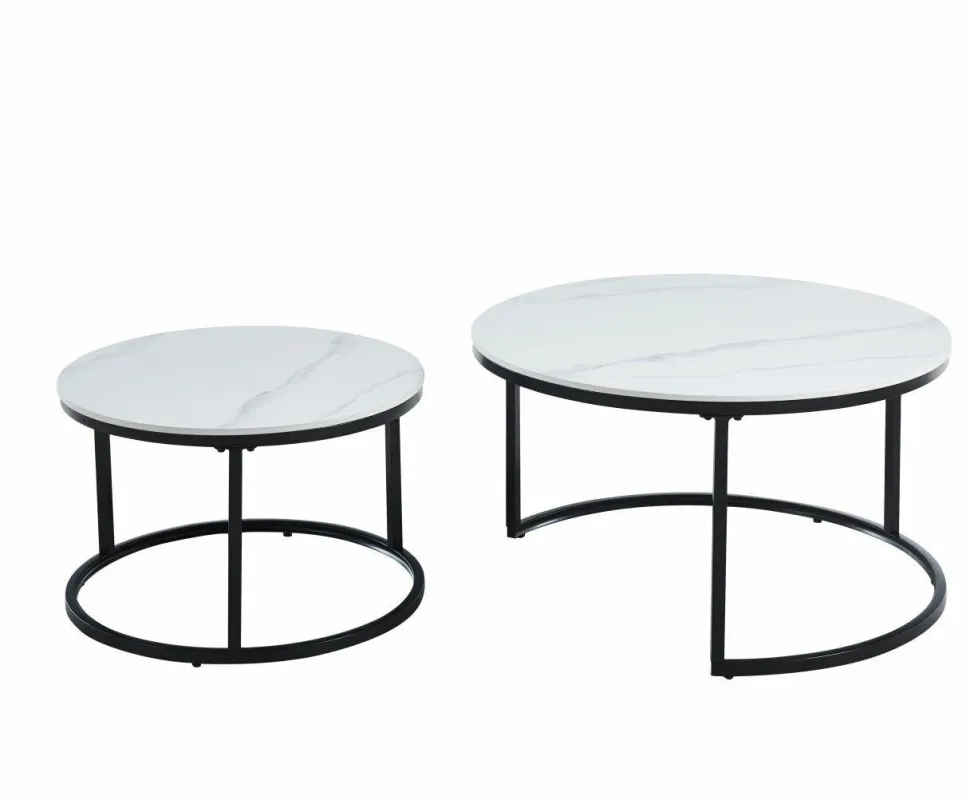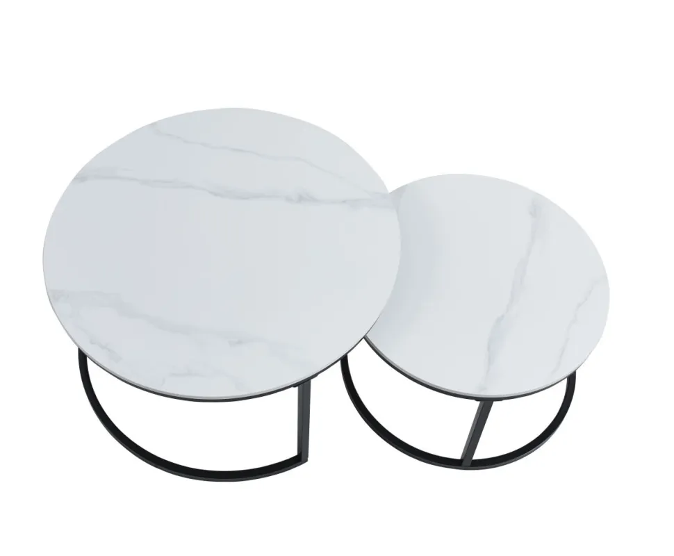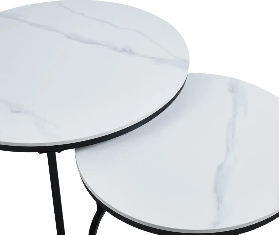 Blaty wykonane z ceramiki imitującej biały marmur dodają im wyrafinowanego charakteru, jednocześnie będąc łatwymi w utrzymaniu czystości. Nogi stolików wykonane z metalu malowanego proszkowo w kolorze czarnym zapewniają stabilność i trwałość.