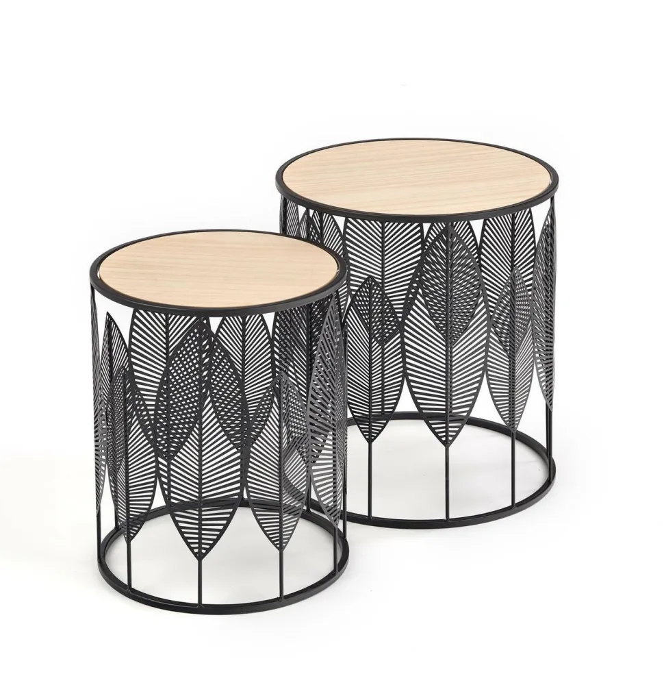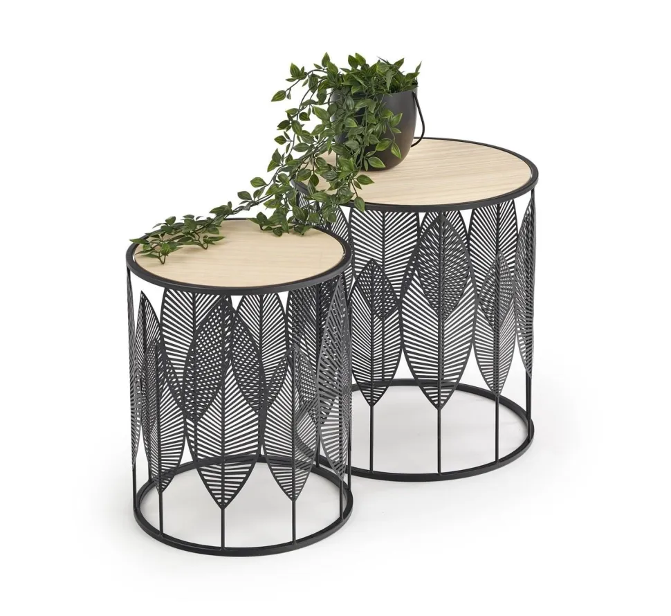 Odmień swój salon dzięki wyjątkowemu zestawowi dwóch stolików Lifts! Wspaniale zaprojektowane meble w stylu skandynawskim zapewniają nowoczesną elegancję i klimat boho w każdej przestrzeni. Wykonane z metalu i płyty MDF fornirowanej w oszałamiającym czarnym i naturalnym kolorze, te okrągłe stoliki oferują współczesny wygląd, który pasuje do każdego wystroju. Mniejszy stolik ma średnicę 33 cm i wysokość 40 cm, a większy ma średnicę 40 cm i wysokość 45 cm – idealny do podkreślenia charakteru każdego domu. Oba stoliki posiadają malowane proszkowo stalowe ramy zapewniające długotrwałą wytrzymałość, dzięki czemu możesz mieć pewność, że nadadzą styl Twoim pomieszczeniom na długie lata!