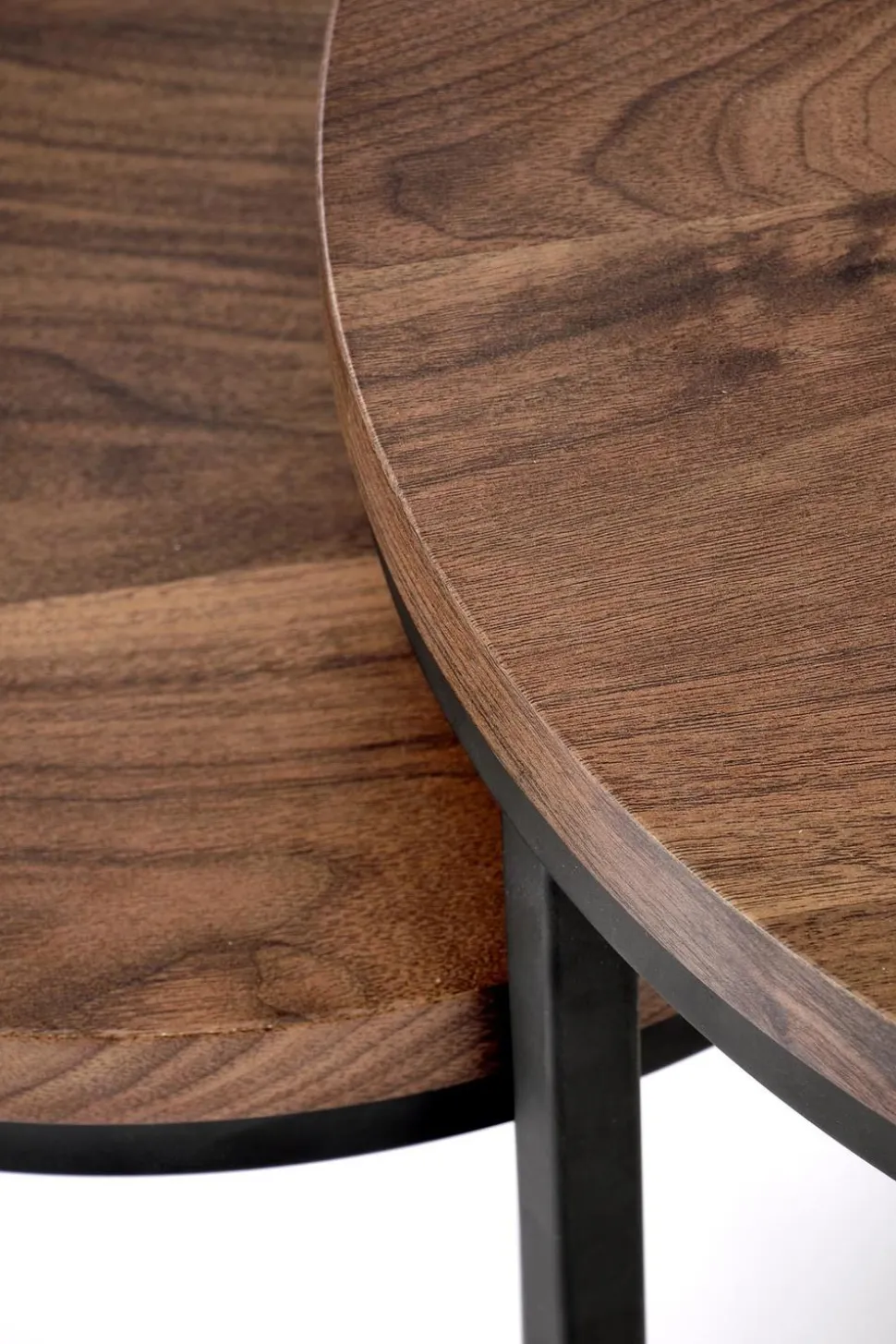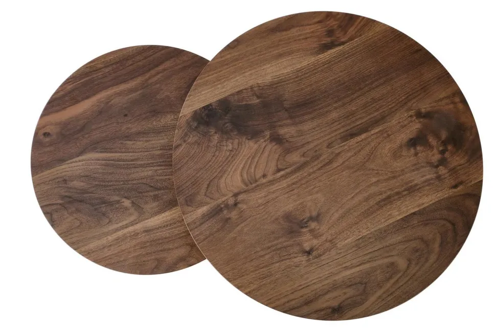 Poznaj Tabarkę, nowoczesne i stylowe rozwiązanie do dekoracji i praktyczności. Zestaw dwóch funkcjonalnych stolików został wykonany z wytrzymałych, malowanych proszkowo stalowych ram w czarnym wykończeniu. Oszałamiająco teksturowane forniry MDF na górze sąw pięknym kolorzeciemnego orzecha– idealne, aby dodać odrobinę luksusu do wystroju domu! Niezależnie od tego, czy używasz ich obok siebie, aby uzyskać rozszerzoną powierzchnię lub oddzielnie jako alternatywne poziomy, czy jeden jako samodzielny element, zestaw dwóch stolików z pewnością będzie przyciągającym wzrok dodatkiem do każdego pomieszczenia. Co więcej, stoliki mają53 i 43 cm średnicy i 45 i 35 cm wysokości, dzięki czemu zmieścisz na nim wszystkie eksponaty tak, jak chcesz! Ulepsz swój wystrój dzięki pięknej Tabarce już dziś!