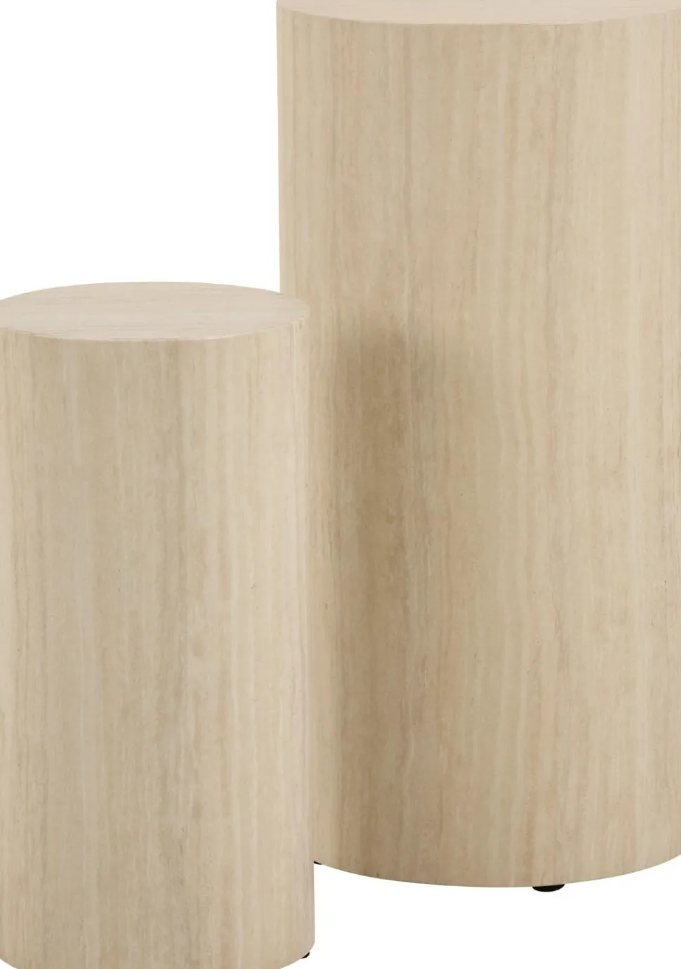 - Stoliki Dice trawertyn to zestaw dwóch stolików o różnych rozmiarach: 34×70 cm oraz 25×50 cm.