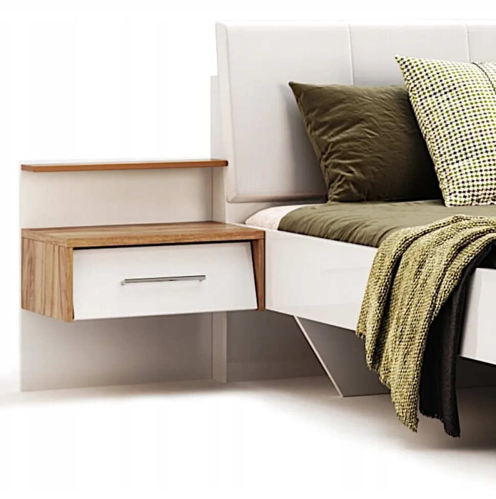 Ich nietypowy design, z frontem szuflad umieszczonym pod skosem, nadaje im niepowtarzalny charakter, który wyróżni Twoją sypialnię spośród innych. Montaż szafek po obu stronach łóżka pozwala na łatwy dostęp do najpotrzebniejszych rzeczy bez wychodzenia z łóżka, co zwiększa komfort korzystania z nich.