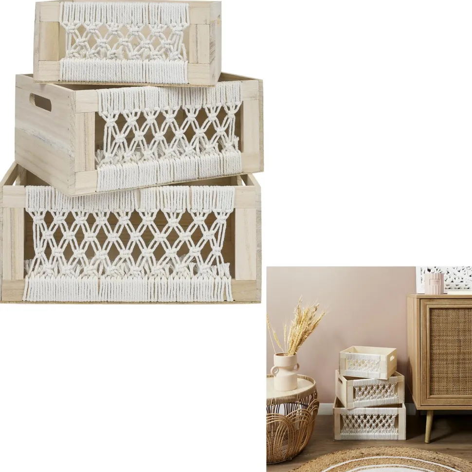 Zestaw 3 pudełek Gigogne w stylu boho to wyjątkowa kombinacja drewna i plecionki, która wprowadzi do Twojego wnętrza nutkę natury i elegancji. Każde pudełko ma jeden bok wykonany z plecionego bawełnianego sznurka, co nadaje im stylowego wyglądu i sprawia, że są zarówno funkcjonalne, jak i dekoracyjne. Wykonane z drewna paulownia oraz bawełnianego sznurka, pudełka są lekkie, ale jednocześnie wytrzymałe.