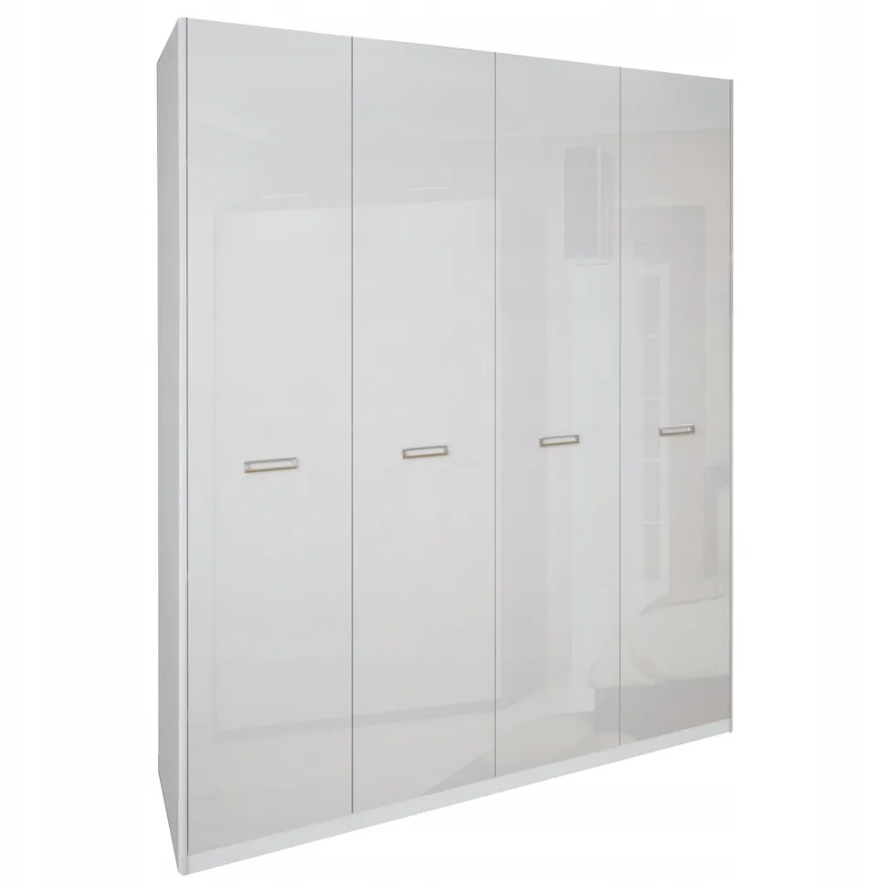 Szafa 4-drzwiowa to imponujący mebel, który oferuje ogromną przestrzeń do przechowywania ubrań, pościeli i innych przedmiotów. Biały połysk i eleganckie wykończenie dodają jej luksusowego charakteru, co sprawia, że szafa jest nie tylko funkcjonalna, ale także estetyczna. Dzięki temu, każdy element zestawu Bella biały połysk wnosi do wnętrza nie tylko praktyczność, ale również styl i elegancję.