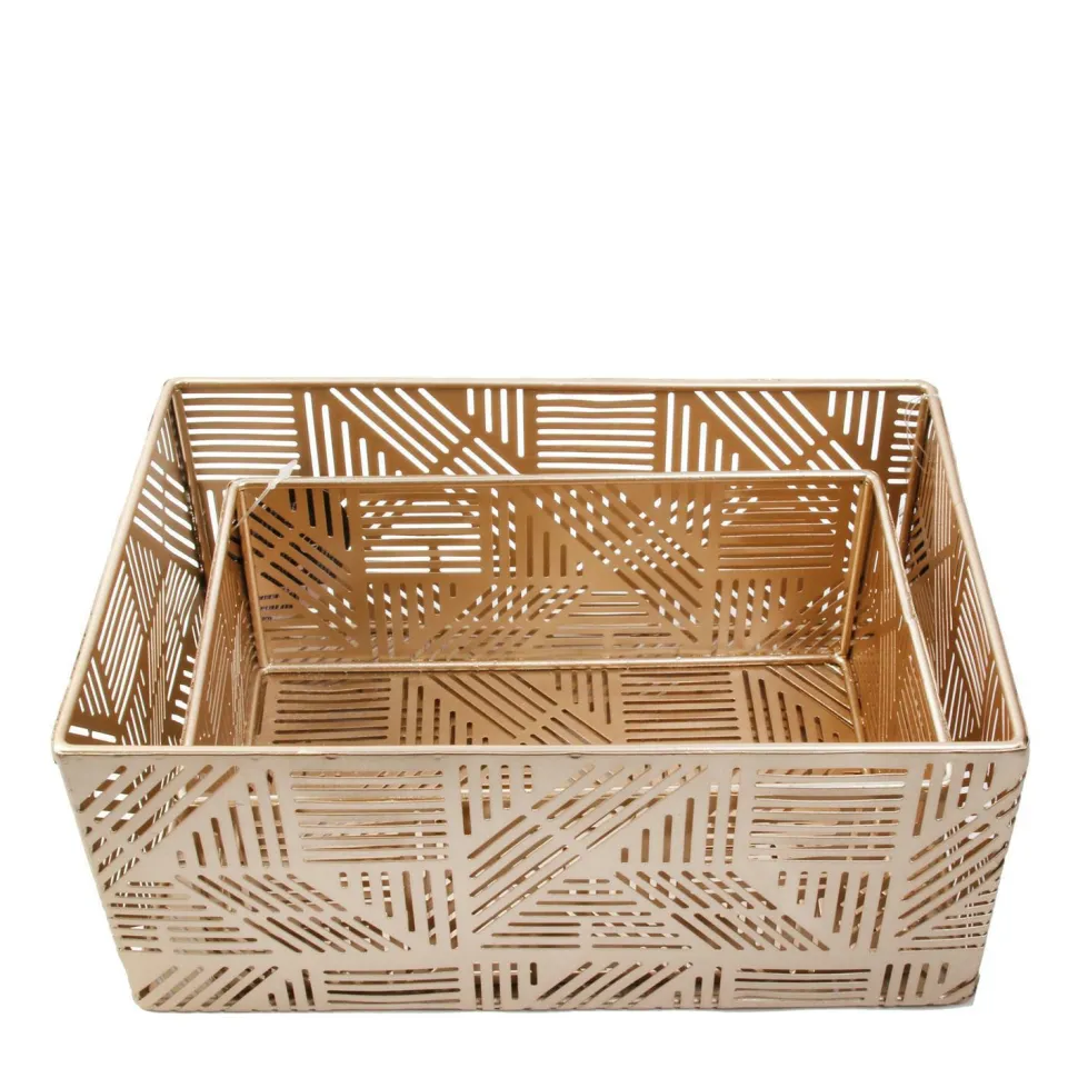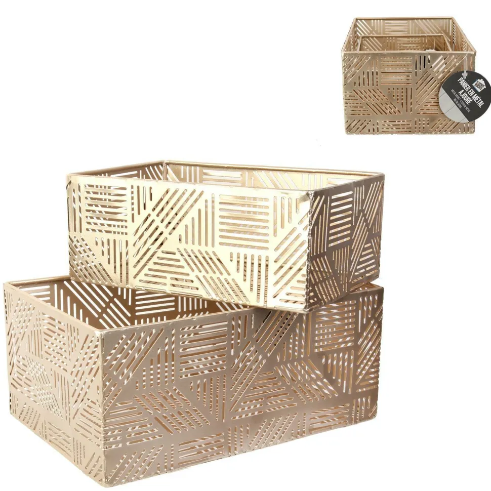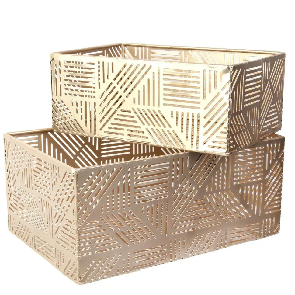 Hitowy produkt wśród ogromu dodatków – organizery w stylu glamour. Doskonałe do wnętrz nowoczesnych, loftowych i skandynawskich. Minimalistyczne skrzynki w modnym, złotym kolorze mogą pełnić rolę półek, regalików, schowków na drobne przedmioty – to zależy od Ciebie i Twoich potrzeb! Zestaw zawiera 2 organizery. Wymiary: 25x17x12 cm i 21x14x9 cm
