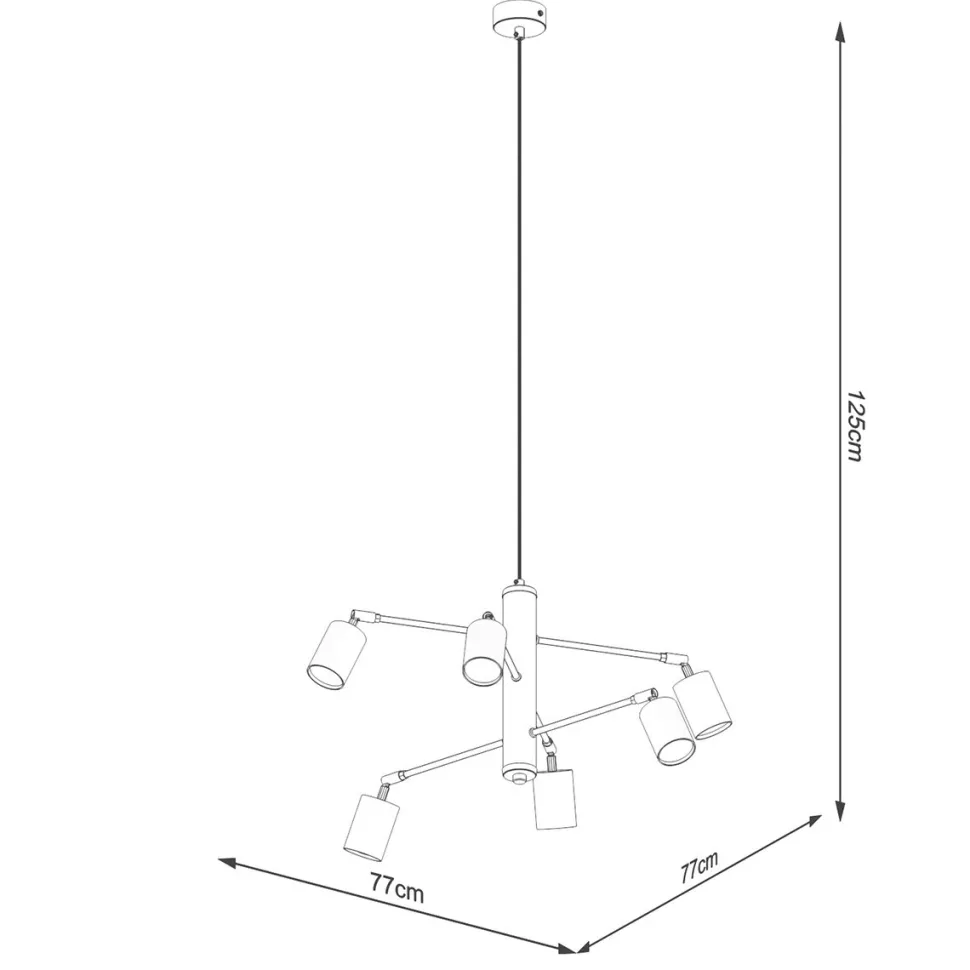 - Funkcjonalność – żyrandol posiada 6 źródeł światła, które świecą w dół, co zapewnia optymalne oświetlenie pomieszczenia.
