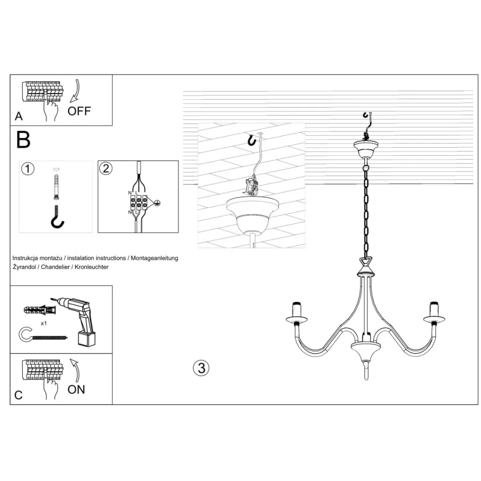 • 3 źródła światła, oprawa żarówki E14