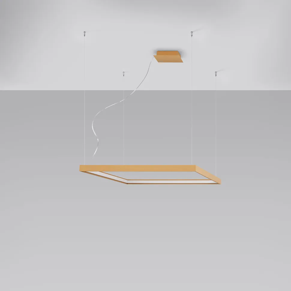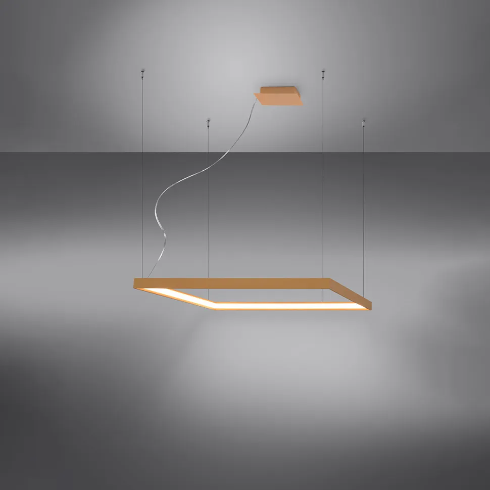 Żyrandol dostępny jest w dwóch rozmiarach: M i L. Kupując Nelya dołączona do paczki jest również żarówka LED, która wystarczyć powinna na cały okres użytkowania przedmiotu.Barwę światła również dobrać możesz pod Twój gust, dzięki możliwości wyboru między opcją 3000K (ciepłym światłem) i 4000K (zimnym światłem). Dzięki listwom ułożonym w kształt kwadratu,przestrzeń oświetlona przez lampę będzie szeroka, a światło rozproszy się w miły dla oka sposób.