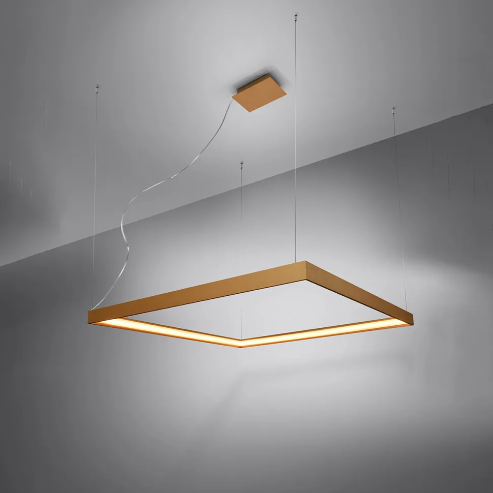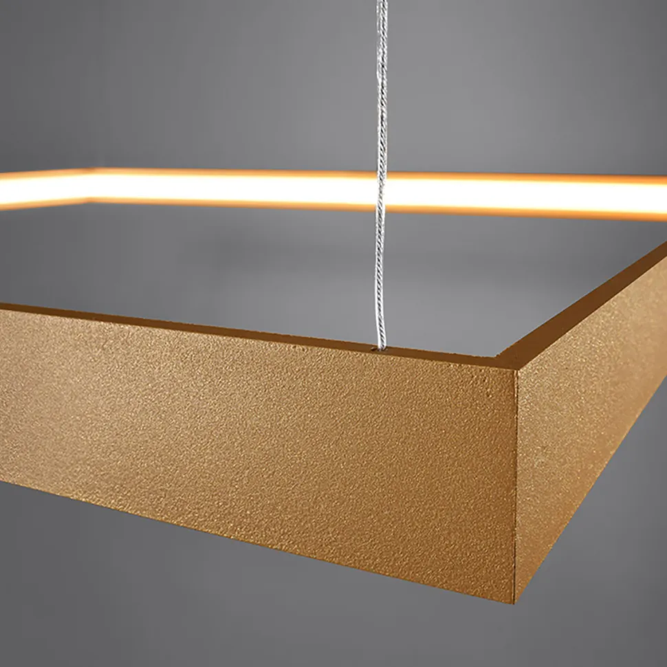 Żyrandol Nelya to lampa, która bardzowydajnie oświetli przestrzeń, jednocześnie będącozdobą i minimalistycznym dodatkiem. Kwadratowy kształt lampy sprawia wrażenie ażurowego i unoszącego się w powietrzu dzięki systemowi linek, które prawie niewidocznie podtrzymują go. Przedmiot dostępny jest w trzech eleganckich kolorach: złotym, białym i czarnym. Przez swój industrialny design pasował będzie zarówno do salonów, ale również nad stół jadalny czy do przedpokoju. Sprawdzi się także jako dodatek do przestrzeni restauracyjnej, hotelowej czy sklepu.