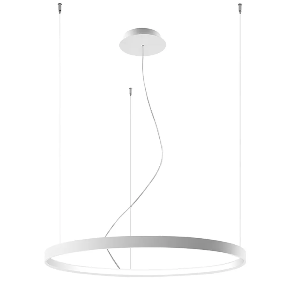 Żyrandol Rio zaprojektowany został wlekkim i ażurowym stylu. Jegoelegancka konstrukcjawydaje się lewitować w powietrzu dzięki systemowi niewidocznych żyłek podtrzymujących klosz. Okrągła lampa dostępna jest w dwóch neutralnych kolorach czerni i bieli.Klasyczne kolory i uniwersalny wygląd w stylu industrialnymbędą pasować do wnętrz w nowoczesnym czy skandynawskim stylu. Biała wersja produktu dopasuje się do praktycznie każdego wnętrza stanowiąc neutralny dodatek o delikatnej zdobności.
