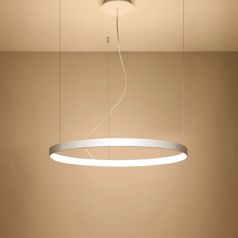 Żyrandol Rio to przede wszystkim funkcjonalność. Okrągła lampa to gwarantwydajnego i równomiernego rozprowadzenia światłapo przestrzeni, a dołączona w zestawie żarówka LED wystarczy na cały czas użytkowania lampy. Do wyboru otrzymujesz trzy rozmiary lampy: 55, 78 i 110 cm w średnicy. Dostępne są również różne kolory światła żarówki. W zależności od potrzebnej barwy, w zestawie dołączona może byćżarówka o ciepłym (3000K) lub zimnym (4000K) odcieniubieli. Ten nowoczesny i elegancki żyrandol pasował będzie zarówno do salonu, jak też do jadalni czy przedpokoju. Świetnie sprawdzi się również w hotelu, restauracji czy sklepie.
