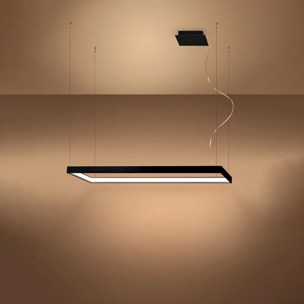 Żyrandol Tuula to lampa bardzo skutecznie oświetlająca przestrzeń i nowocześnie zdobiąca wnętrze. Praktycznie niewidoczne linki podtrzymują ażurową konstrukcję kwadratowej lampy, sprawiając wrażenie, że unosi się ona w powietrzu. Produkt dostępny jest w trzech loftowych kolorach: złotym, białym i czarnym. Przez swój industrialny design pasował będzie do przestrzeni restauracyjnej, hotelowej czy sklepu. Sprawdzi się także jako dodatek do salonu, ale również do przedpokoju czy jadalni.