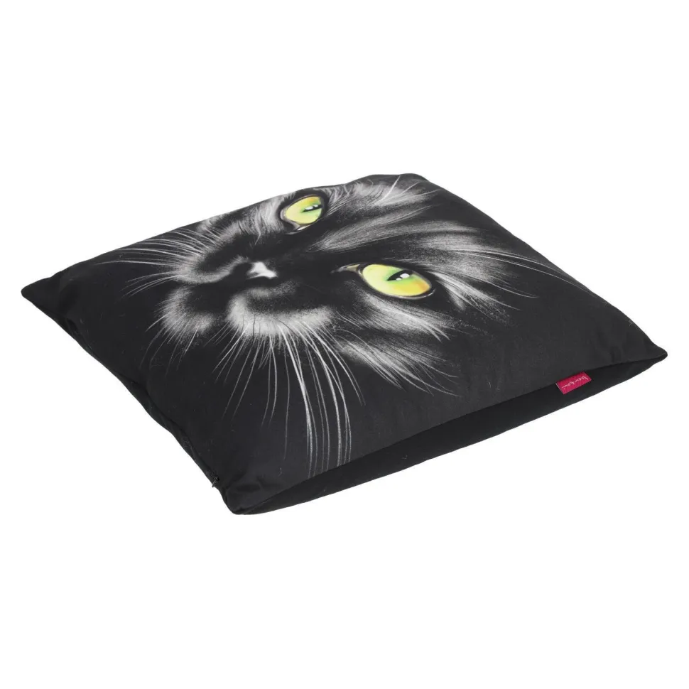 Poduszka z nadrukiem w postaci czarnego kota wyróżnia się modnym wzornictwem i dużą trwałością printu. Jest to połączenie prostoty stylu z nowoczesną technologią. Najwyższej jakości cyfrowy nadruk można wielokrotnie prać w pralcew temperaturze wysokości 40°C. Poszewka poduszki z jednej strony posiada trwały nadruk, a z drugiej jest jednokolorowa. Użyty do jej produkcji materiał to tkanina welurowa, która jest bardzo przyjemna w dotyku i łatwa w utrzymaniu czystości. Dodatkowo poszewka jest zdejmowana i zapinana na zamek błyskawiczny. Poduszka dekoracyjna NERO będzie bezpieczna dla wszystkich ze względu na swój antyalergiczny wkład.