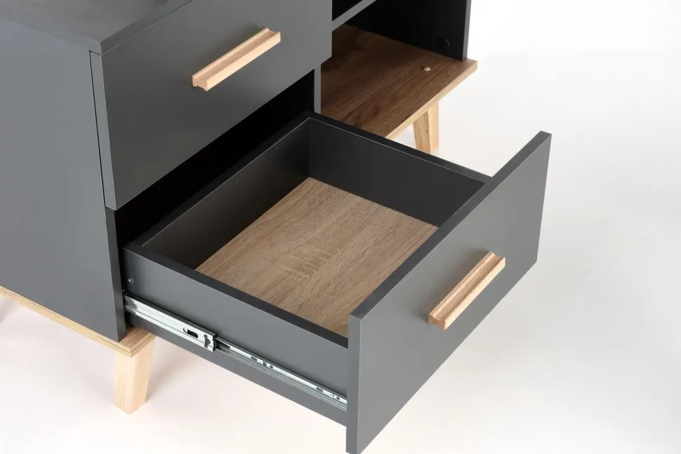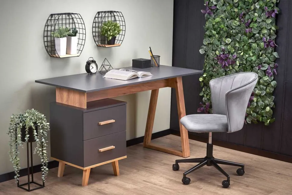 Kolor antracyt mati dąb wotan nadaje biurku eleganckiego i nowoczesnego wyglądu. Pasuje do różnych stylów wnętrz, dodając im charakteru i stylu.Biurko Exena to nie tylko praktyczne i funkcjonalne rozwiązanie, ale również estetyczne i trwałe. Dzięki niemu możesz cieszyć się komfortem pracy i mieć pewność, że będzie Ci służyć przez wiele lat. Niezależnie od tego, czy pracujesz w domu, czy w biurze, to biurko spełni Twoje oczekiwania i zapewni Ci idealne warunki do skutecznej i wydajnej pracy.