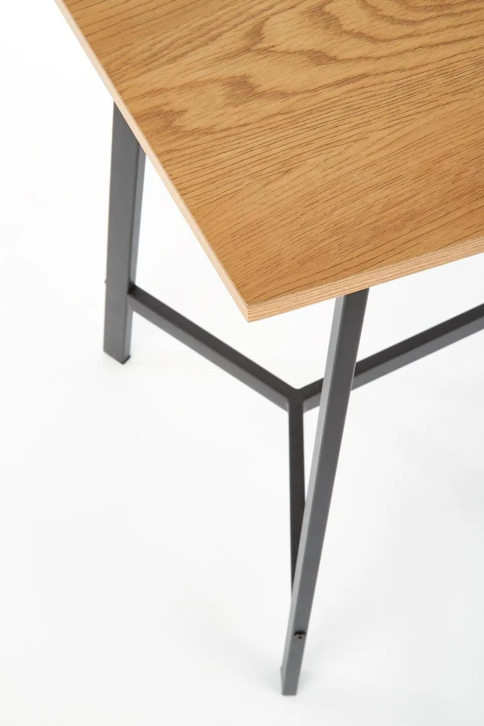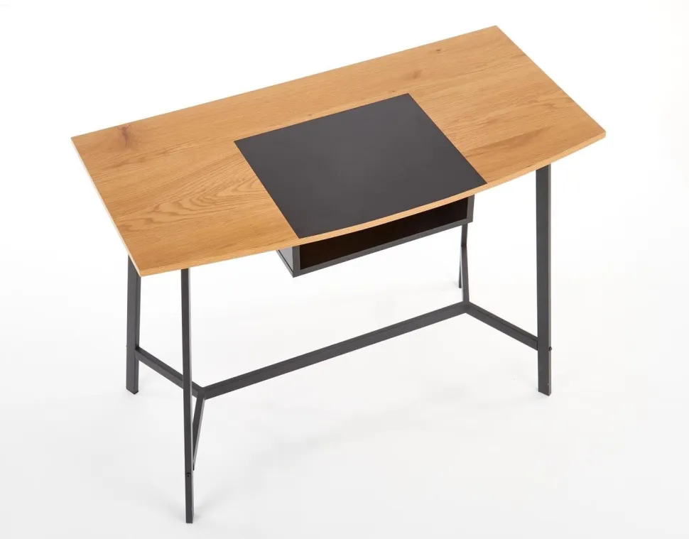 Biurko Inner dąb złoty/ czarny Biurko Inner to połączenie funkcjonalności i unikalnego designu, które wyróżni się w każdej przestrzeni. Inner to mebel stworzony z myślą o nowoczesnych i loftowych aranżacjach. Wykonane z okleinowanego MDF oraz stali malowanej proszkowo, łączy w sobie wytrzymałość z estetyką. Kombinacja kolorów – dąb złoty i czarny – nadaje mu elegancji i kontrastu. Biurko Inner to zarówno praktyczne miejsce pracy, jak i wyjątkowy element dekoracyjny. Wyposażone w jedną półkę, mebel oferuje miejsce na przechowywanie dokumentów czy laptopa, pomagając zachować porządek wokół. Nietypowy design nadaje mu charakteru, a elegancki dąb złoty oraz czarny kolor podstawy dodają mu nowoczesnej estetyki. To biurko jest idealnym wyborem dla osób poszukujących mebli o niebanalnym wyglądzie. Wyjątkowy design sprawia, że mebel Inner wyróżni się w każdym wnętrzu, wprowadzając unikalny akcent do przestrzeni. Przygotuj się na mądry wybór! Biurko Inner to doskonałe połączenie praktyczności i oryginalnego designu, tworząc mebel zarówno funkcjonalny, jak i estetyczny. MDF okleinowany oraz stal malowana proszkowo gwarantują trwałość mebla na lata. Kombinacja kolorów – dąb złoty i czarny – dodaje meblowi elegancji i kontrastu. Jedna półka na przechowywanie dokumentów czy laptopa. Nietypowy design mebla Inner wyróżni się w każdym wnętrzu, dodając mu niepowtarzalnego charakteru.