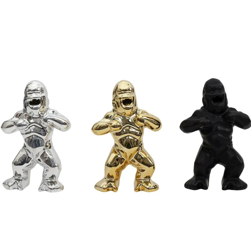 Dekoracja goryl tonietypowy dodatek, który skradnie serca miłośników zwierząt, niekoniecznie tylko tych domowych. Odrobina egzotyki zamknięta w przykuwającej uwagę figurce goryla,ozdobi naszą konsolę, komodę lub półkę. Figurka została wykonanaz tworzywa wykończonego w połysku. Dekoracja dostępna jest w trzech modnych kolorach, które mogą stworzyć zjawiskowy zestaw. Jest to figurka obok, której nie da się przejść obojętnie.