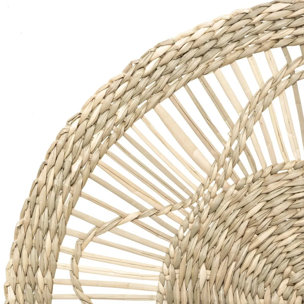 Dekoracja ścienna Seagrass to wyjątkowy sposób na dodanie trochę stylu do Twoich ścian. Zestaw trzech kółek dekoracyjnych wykonany jest z trawy trzcinowej i przyciąga wzrok swoimi niezwykłymi wzorami.