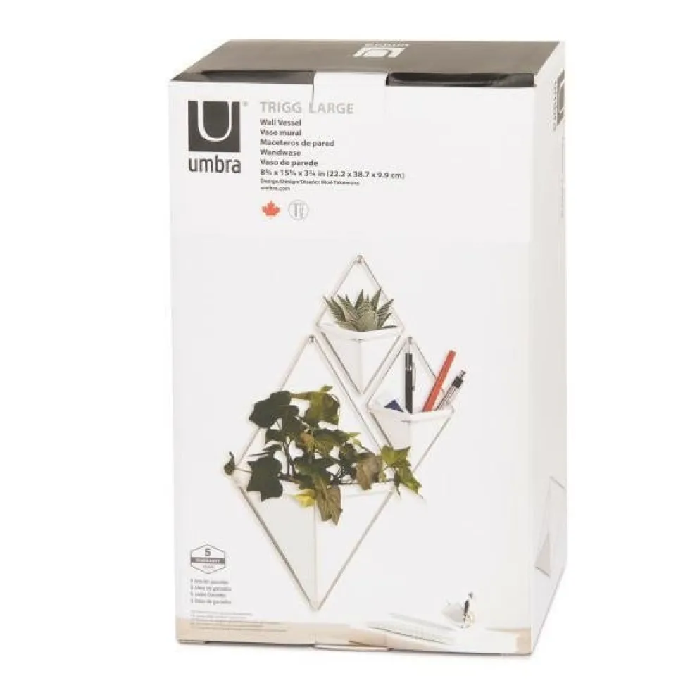 Doniczka Trigg marki Umbra to doskonałe rozwiązanie dla osób, które szukają alternatywy dla klasycznych doniczek. Niklowa rama idealnie współgra z ceramiczną doniczką w geometrycznum stylu. Projektantka Moe Takemura tworzy niepowtarzalne rzeczy, które łączą ze sobą szwedzką prostotę z japońskim, eleganckim minimalizmem.