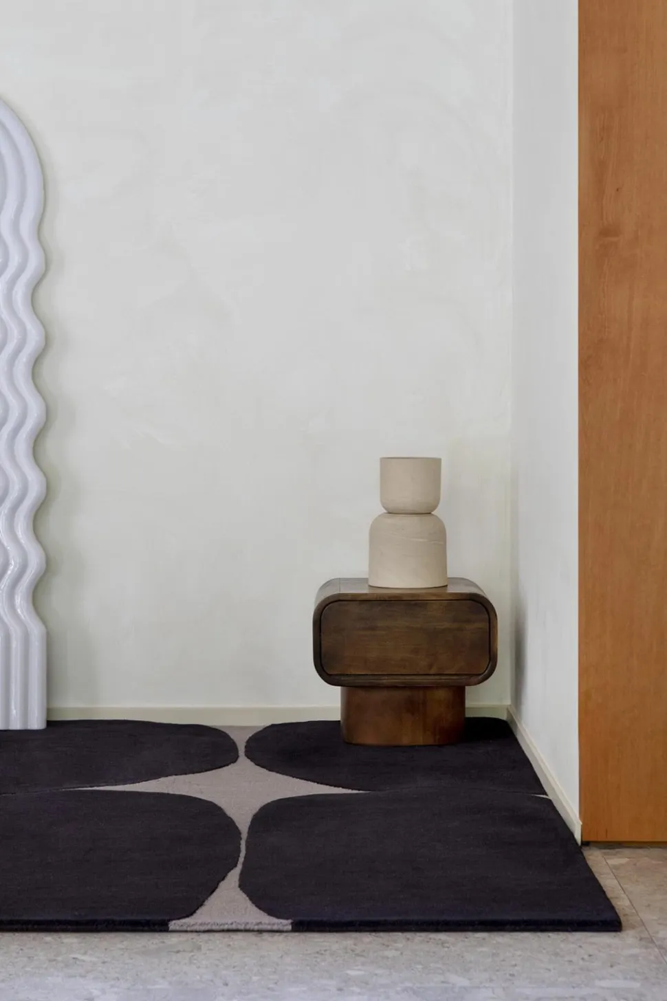 Decor BrutaOff-Black – Wełniany Dywan | Carpets&More Dodaj odrobinę uroku i elegancji do swojego domu dzięki temu oszałamiająco pięknemu dywanowiDecor Brutaod Carpets&More.Tkanyręcznie metodą tuftowania, składa się z wielu małych kępek, dzięki czemu jest niezwykle miękki i przyjemny w dotyku.Ciesz się lepszą akustyką, regulacją ciepła i oczyszczaniem powietrza w swoich wnętrzach! Przedstawiamy dywanDecor Bruta- najlepszego przyjaciela Twojego domu, który z pewnością stanie się Twoim ulubionym kompanem we wnętrzu.Wykonany w 100% z wełny, jest miękki i przyjemny w dotyku, ale to nie koniec jego zalet:dywan pracuje 24 godziny na dobę, 7 dni w tygodniu, aby ułatwić Ci życie. Dzięki starannemu, ręcznemu wykonaniu pomaga w ulepszeniu akustyki pomieszczenia i regulacji ciepła, jednocześnie zbierając kurz i chemikalia, aby oczyścić powietrze. Ponadto jest dziecinnie prosty w czyszczeniu – adzięki dużej gramaturze 4500 g / m2 będziesz mieć gwarancję, że pozostanie odporny na przetarciai będzie trwać przez lata! Nie przegap więc swojej szansy na zakup dywanuDecor Bruta i uczyń swój dom przytulniejszym, czystszym i lepiej brzmiącym miejscem. O tym warto pamiętać! Trwałość i staranne, ręczne wykonanie Łatwy w czyszczeniu, dzięki czemu nie wymaga specjalnej konserwacji Hipoalergiczny i bezpieczny dla całej rodziny Poprawia akustykę domu, jednocześnie utrzymując ciepło w pomieszczeniu Zbiera i zatrzymuje drobinki kurzu i substancji chemicznych – poprawia jakość powietrza w domu