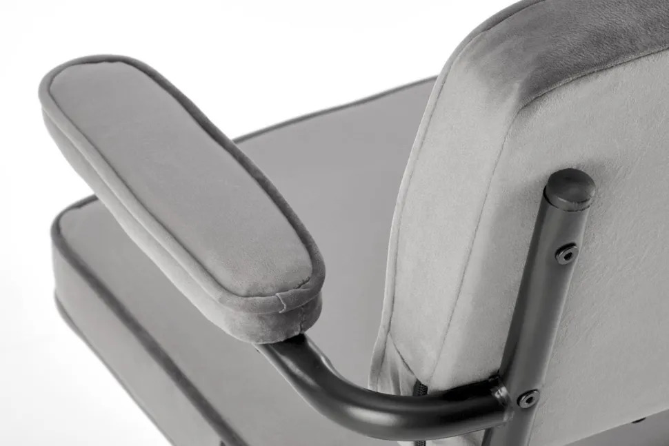 Fotel Defil został wyposażony w mechanizm tilt, który umożliwia regulację nachylenia oparcia. Dzięki temu możesz dostosować pozycję siedzenia do swoich indywidualnych preferencji, zapewniając sobie optymalne wsparcie i komfort przez cały dzień. Wygodne siedzisko i oparcie pokryte tkaniną velvet w kolorze popielatym dodają elegancji i stylu. Ta miękka i przyjemna w dotyku tkanina zapewnia nie tylko estetyczny wygląd, ale także wygodę podczas długich godzin pracy.