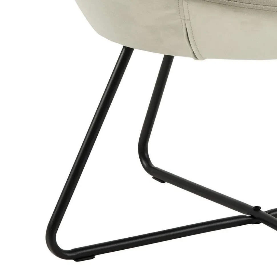 FOTEL CENTER to ponadczasowe połączenie metalu i welwetowej tkaniny VIC w odcieniu beżu. Podstawa to krzyżujące się metalowe płozy malowane proszkowo na kolor czarny. Dodatkowo są one wyposażone w plastikowe podkładki, dzięki czemu nie musisz się martwić, że fotel porysuje podłogę. Obszerne siedzisko posiada wygodne podłokietniki, które w połączeniu z półokrągłym oparciem zachęcają do błogiego odpoczynku, a elastyczna tapicerka dopasowuje się do kształtu ciała. Decydując się na fotel koktajlowy Center, dajesz sobie szansę na komfortowy mebel wypoczynkowy, ale i piękny dodatek do wnętrza w stylu minimalistycznym, nowoczesnym i scandi.